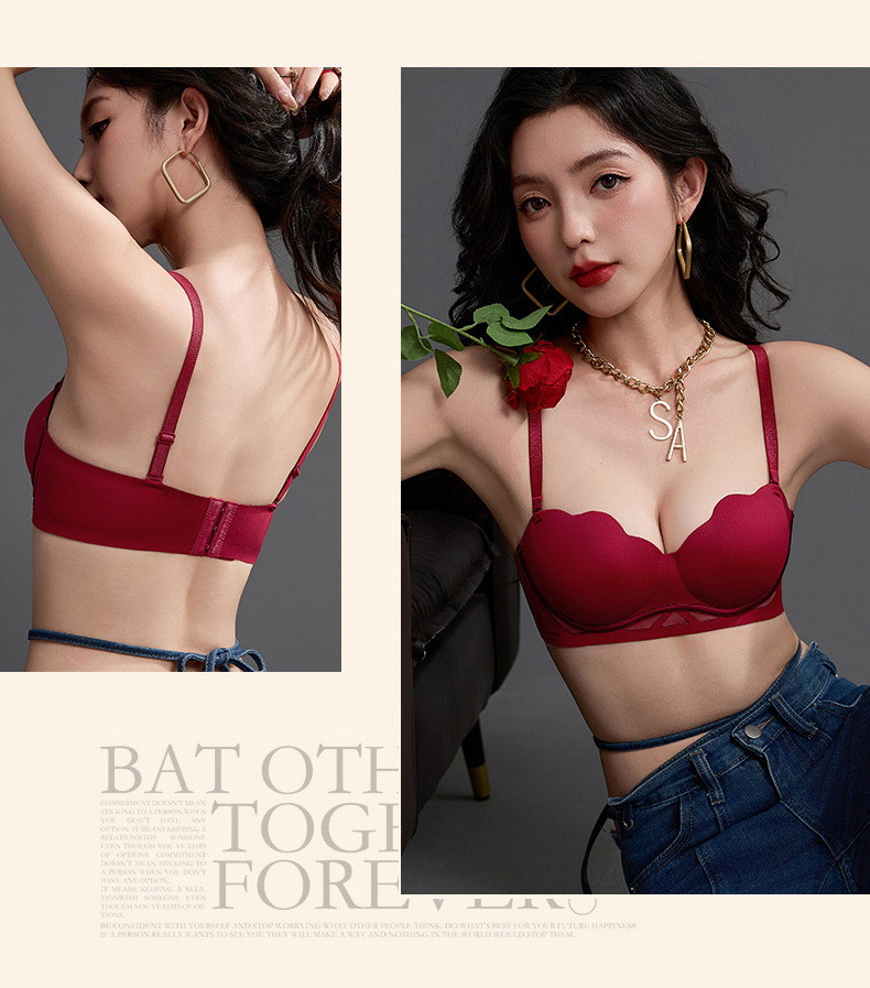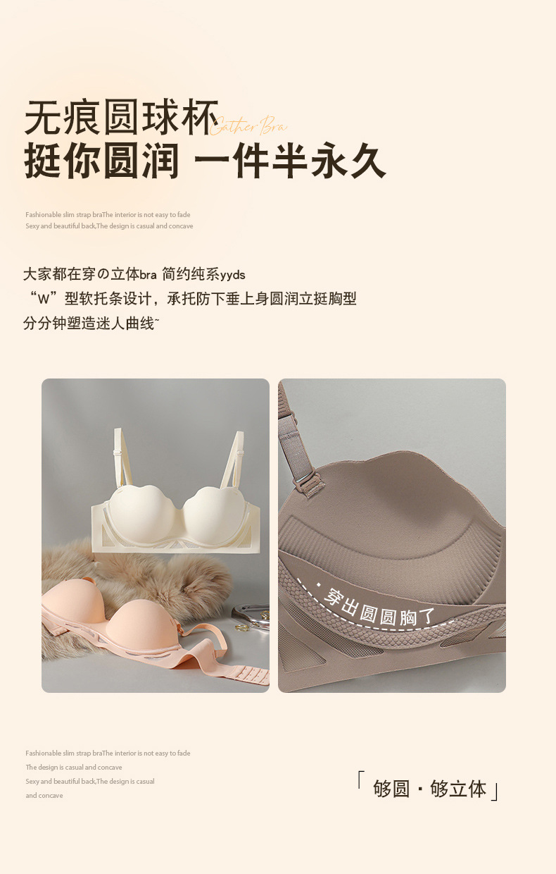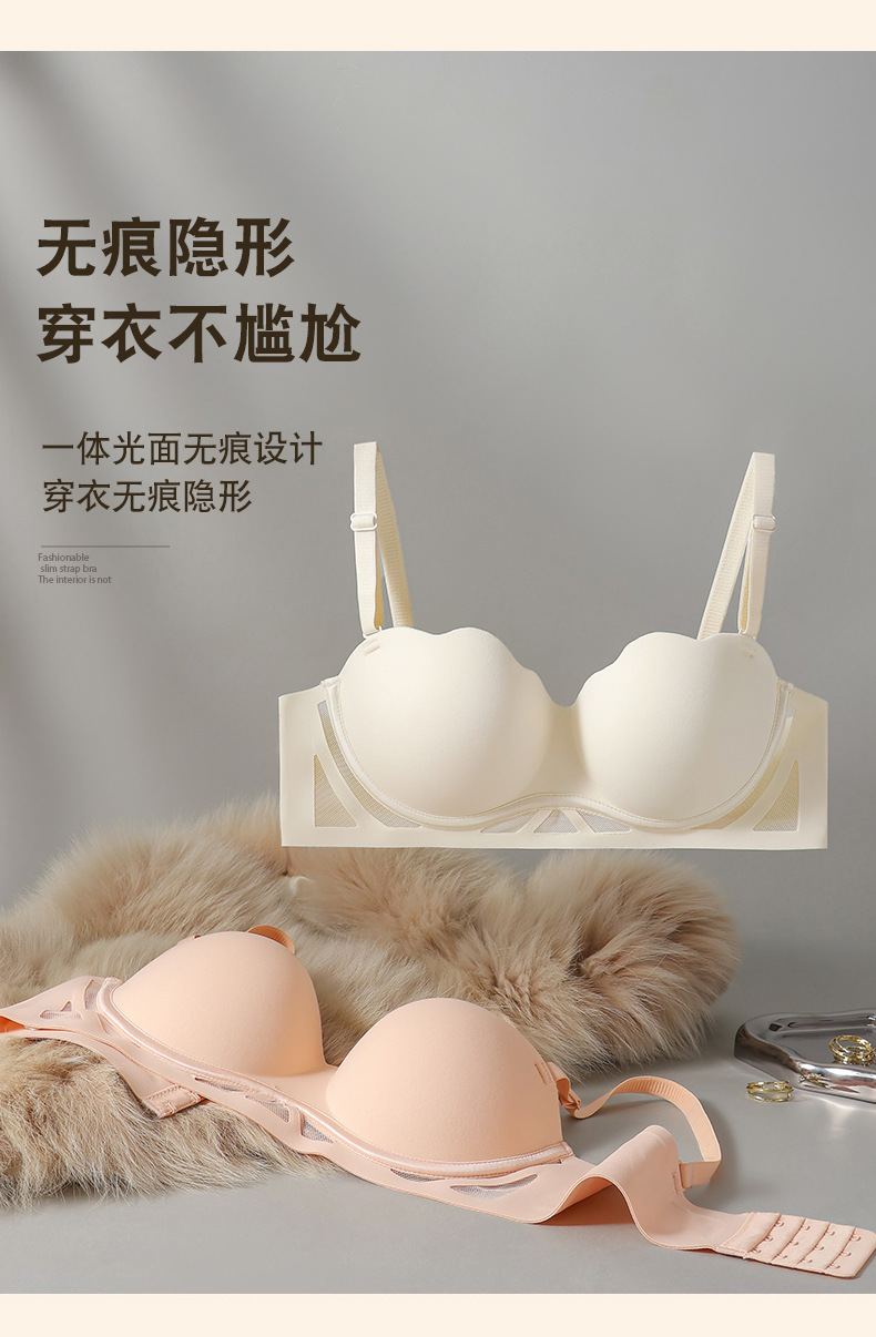 无痕粉底液内衣女小胸聚拢显大加厚按摩杯美背细肩带收副乳文胸罩