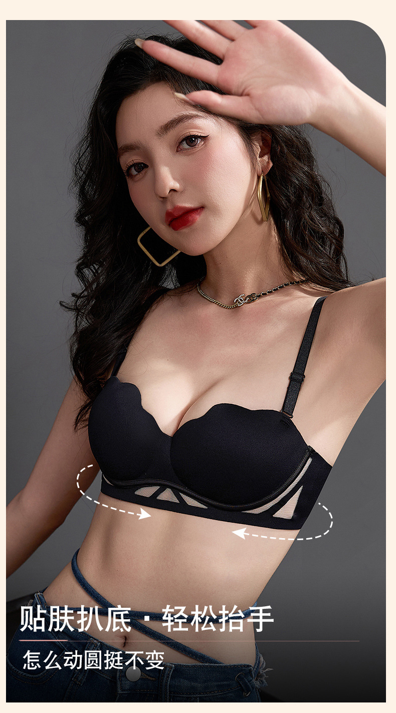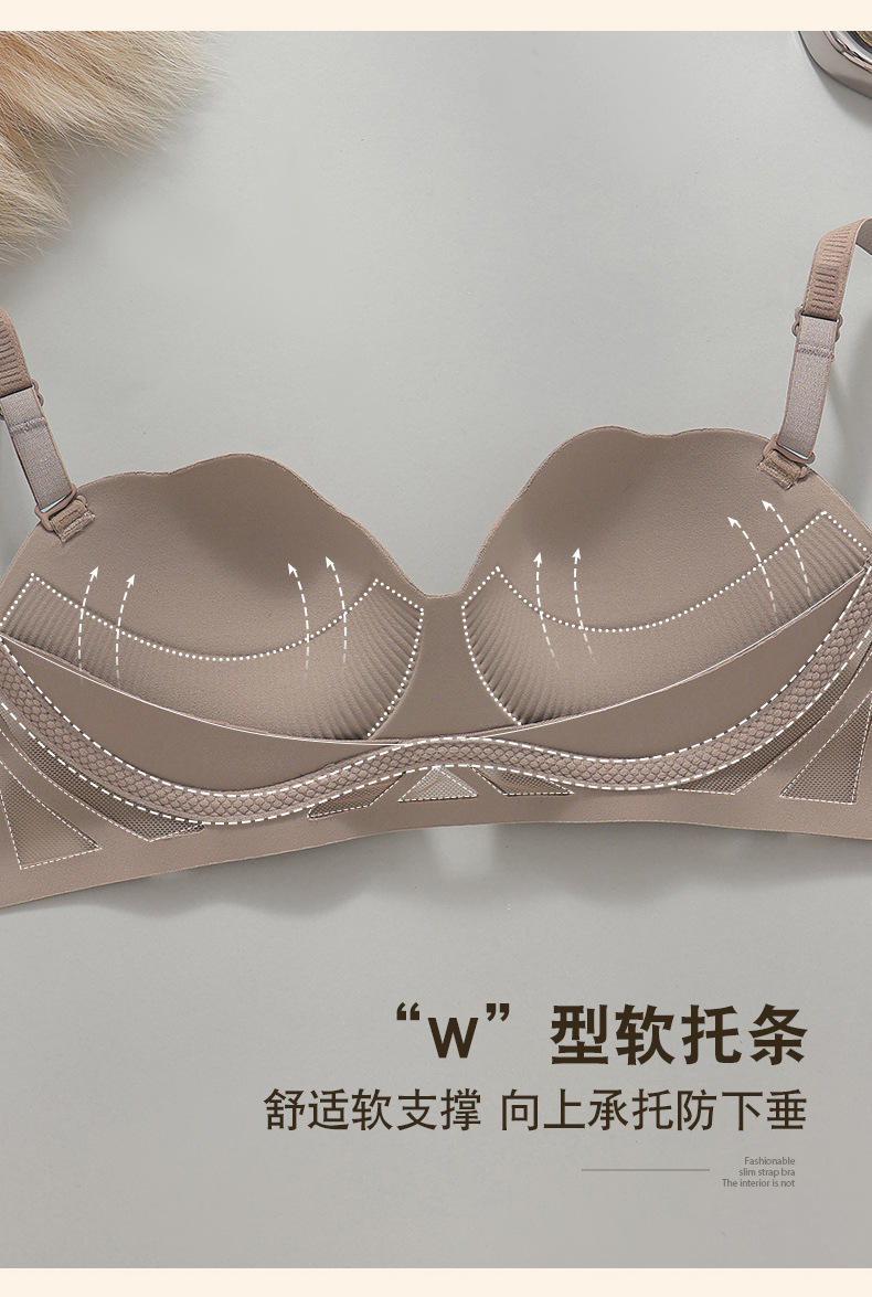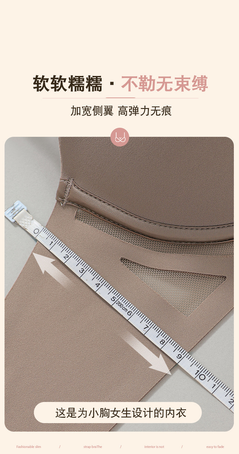 胸が小さい女性向けのシームレスな人気の下着、薄いリムなしのゼリーストリップ、ソフトサポート、リフティング、たるみ防止ブラジャー