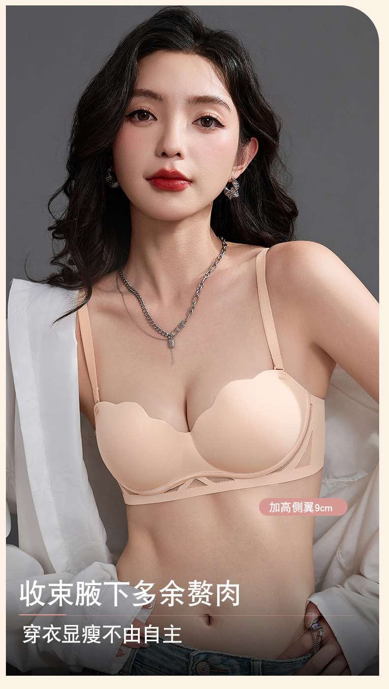 メーカー東南アジア国境を越えた女性用下着、シームレスな小さな胸のプッシュアップワンピーストップサポート、たるみ防止、ノンワイヤーブラジャー