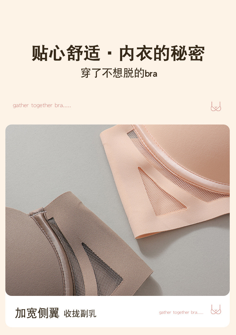 工場直販女性用ソフトサポートブラ、プッシュアップ、たるみ防止、副乳縮小ブラ、ノンワイヤー固定カップブラ