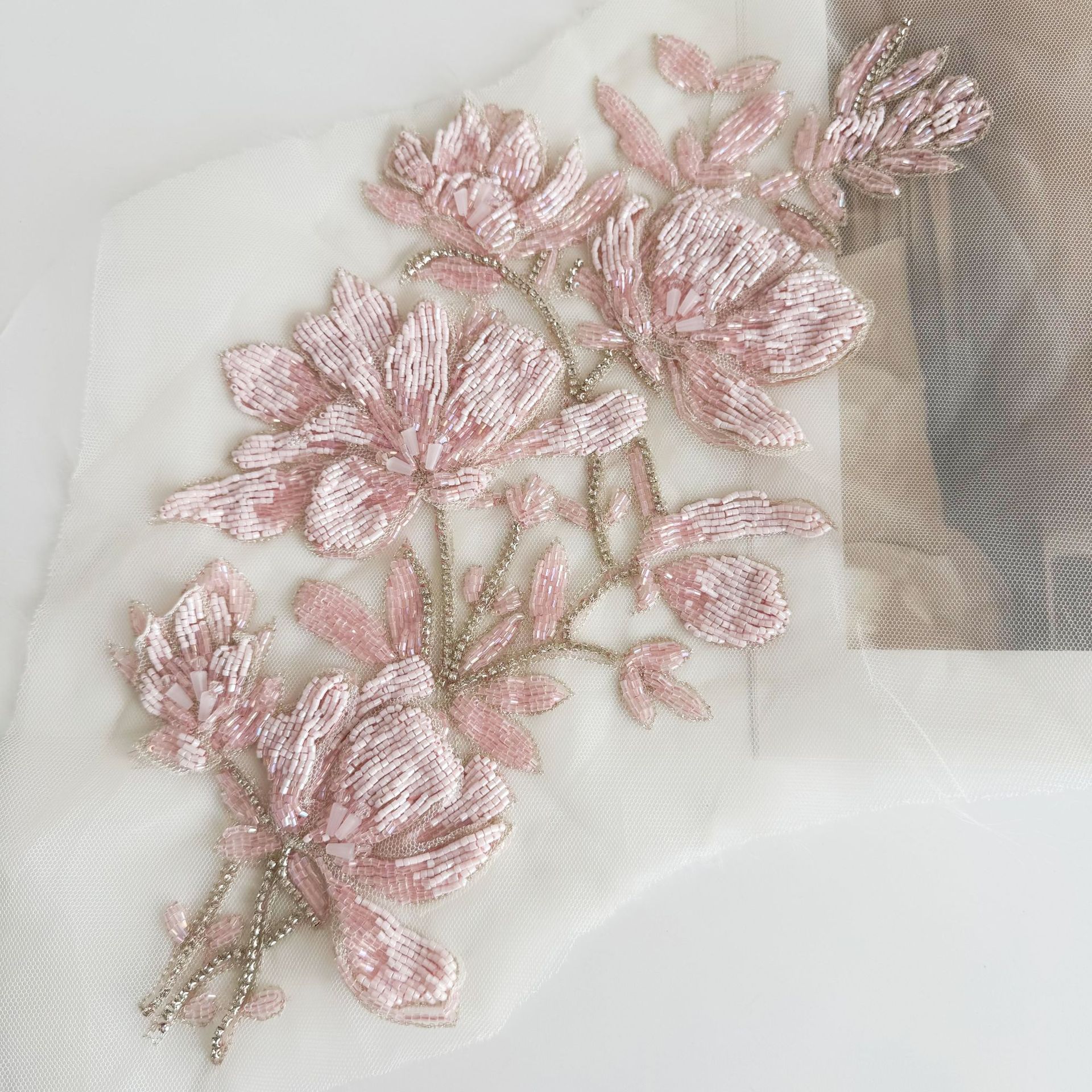 花嫁の髪飾り花片布貼りレース米珠レース補助ビーズdiy手作りウェディングアクセサリー