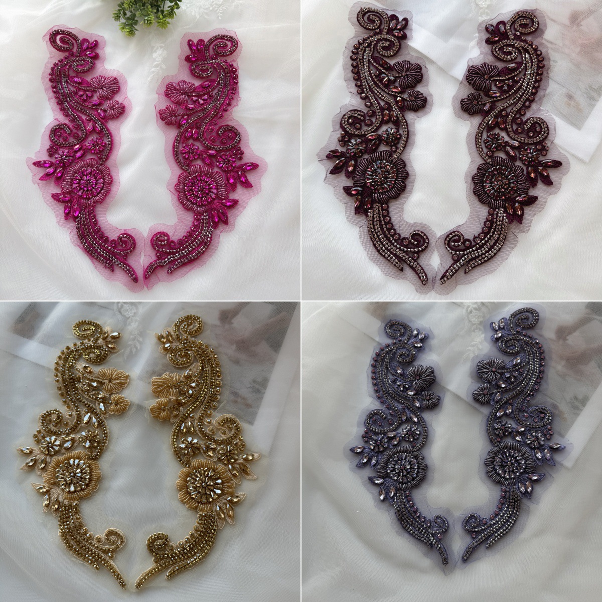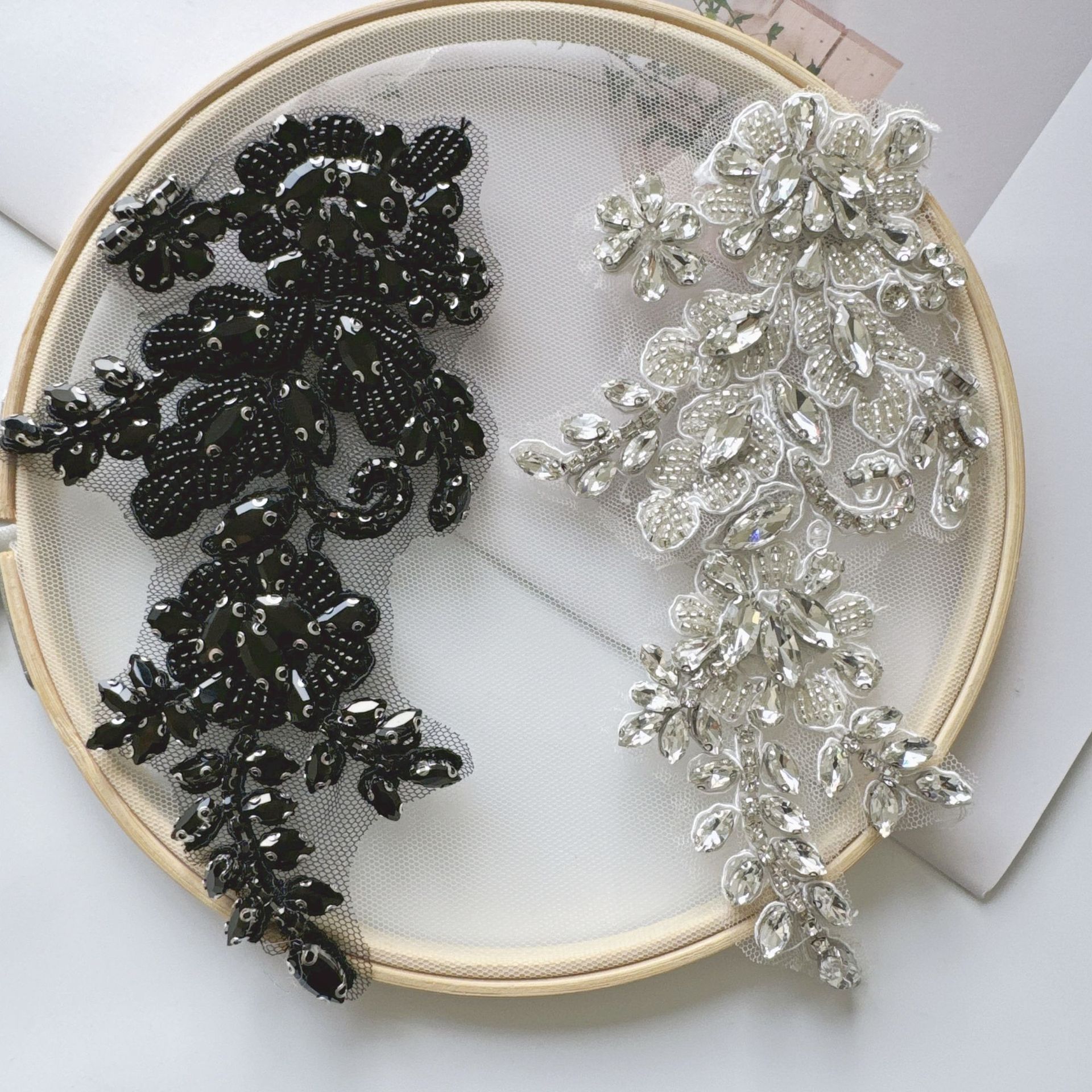 新款车骨贴花补丁水晶钉珠现货婚纱礼服魔术贴服装DIY布贴辅料
