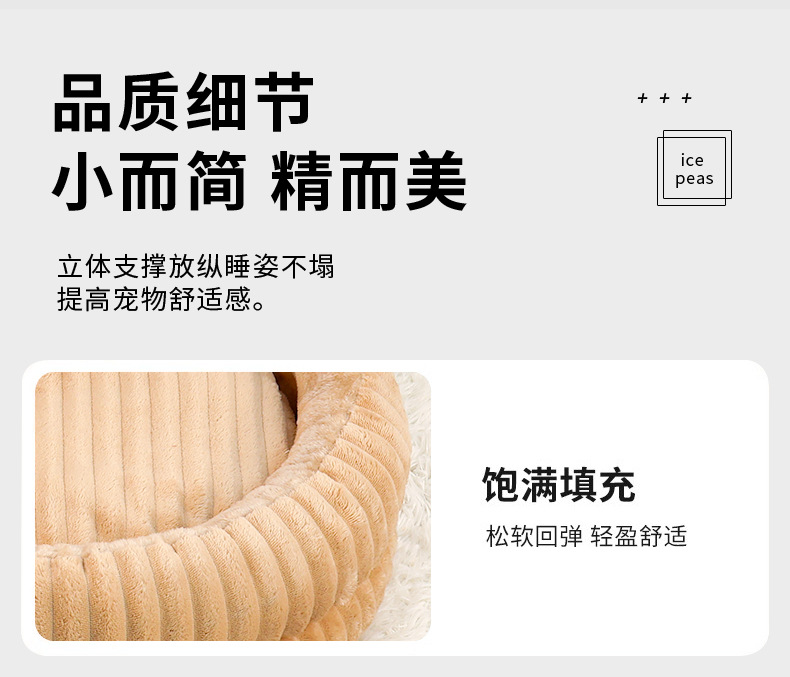 TEMU热销直条兔毛压线圆窝宠物垫猫窝狗窝大中小犬加厚猫狗垫批发