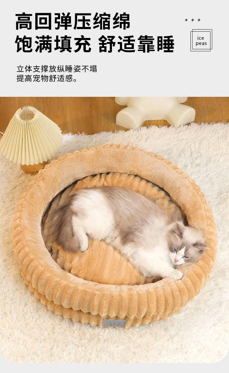 跨境新款可拆圆形宠物窝加厚保暖防潮猫狗窝四季通用中小型犬​​
