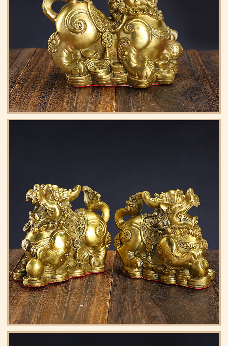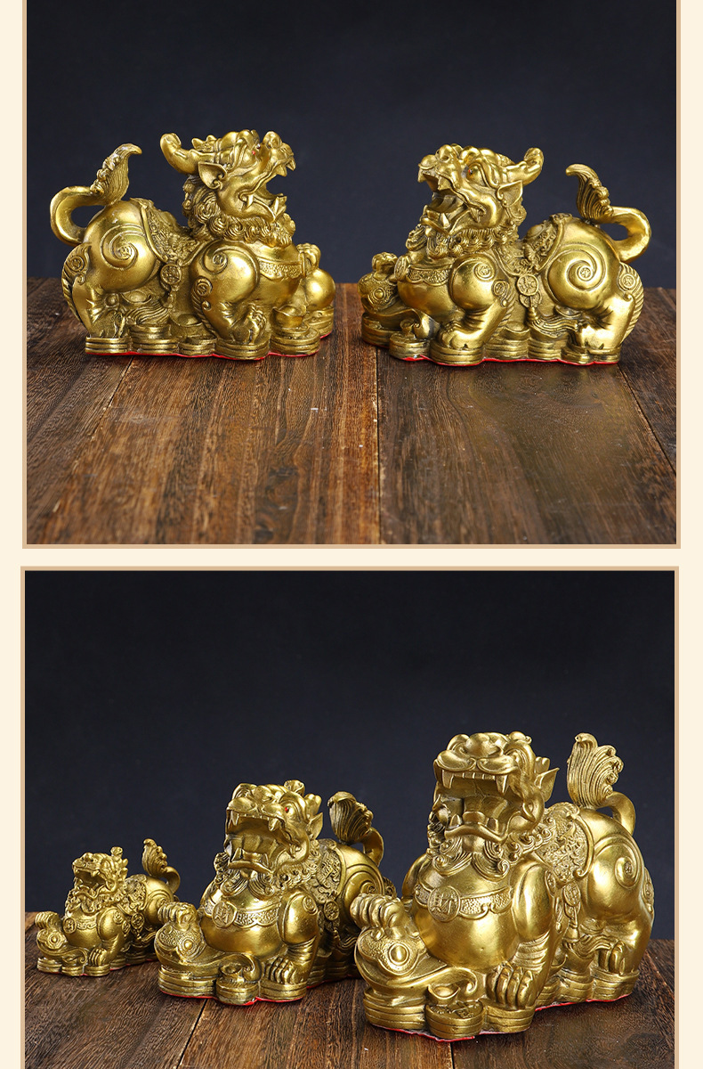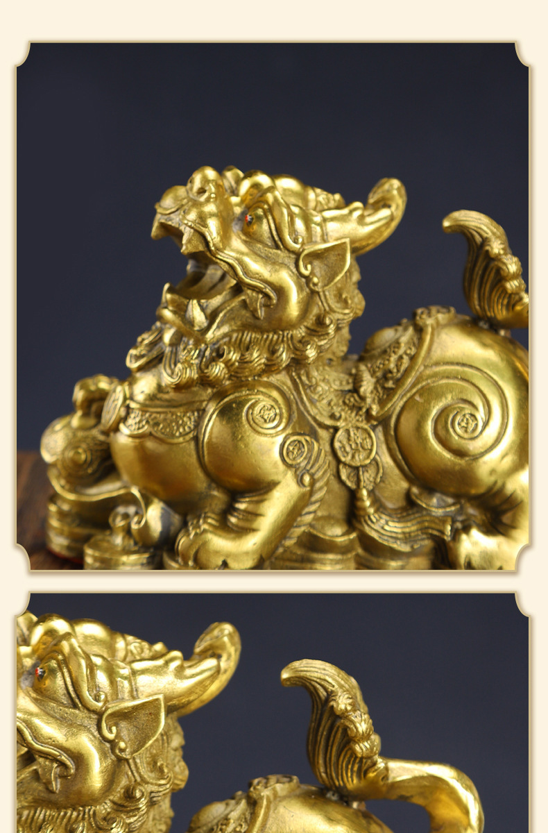 富と祝福を引き寄せる純粋な真鍮の貔貅の装飾品、富を集める貔貅、貔貅ユニコーン如意元宝、ホームリビングルームギフト