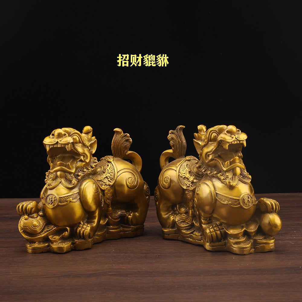 黄铜如意貔貅摆件办公室店铺开业家居摆件金属金钱貔貅铜铸批发