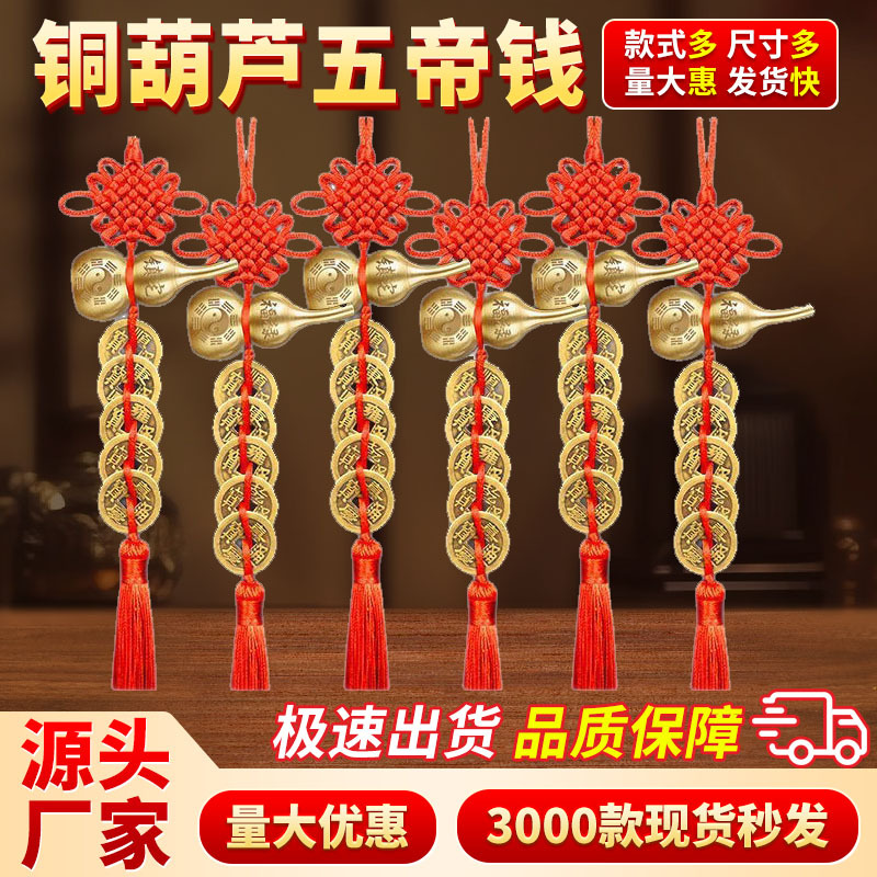 工場卸売銅貨五帝銭ペンダント玄関ドア用吉祥結び福禄銅製ひょうたん工芸品