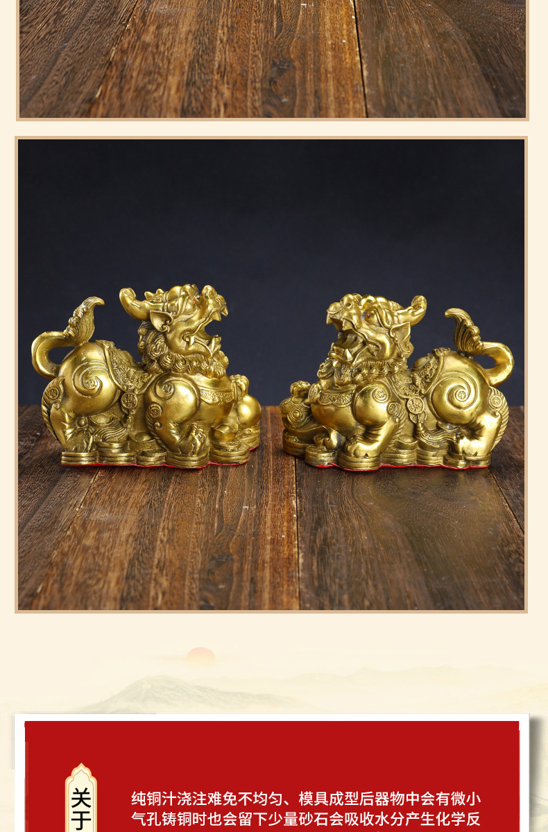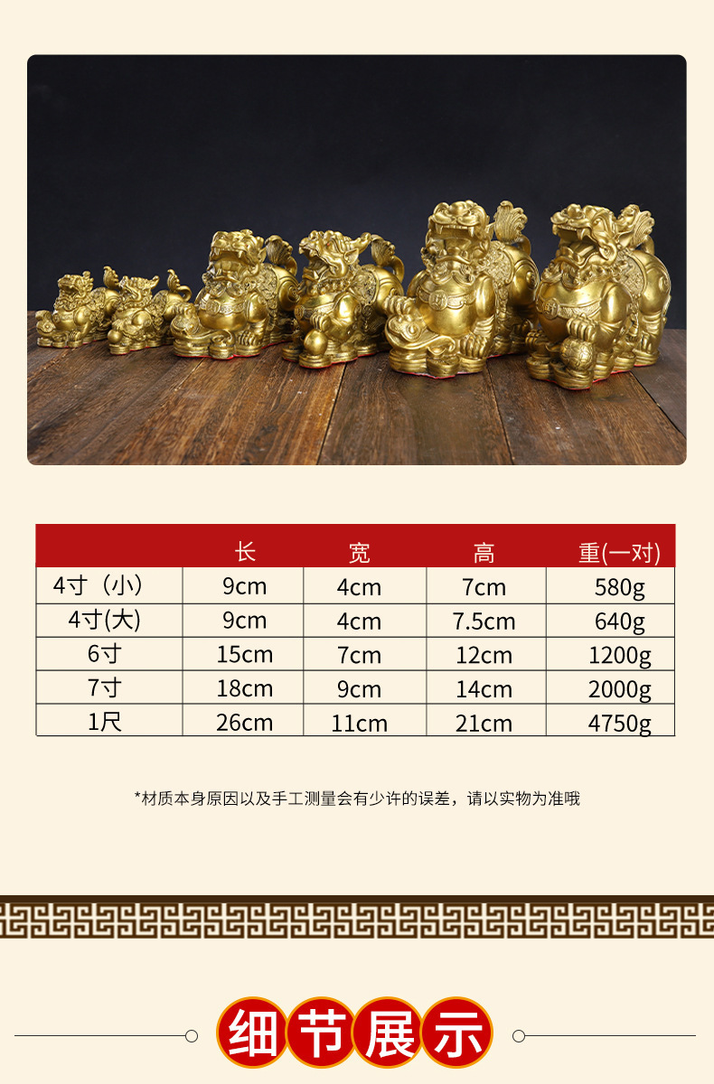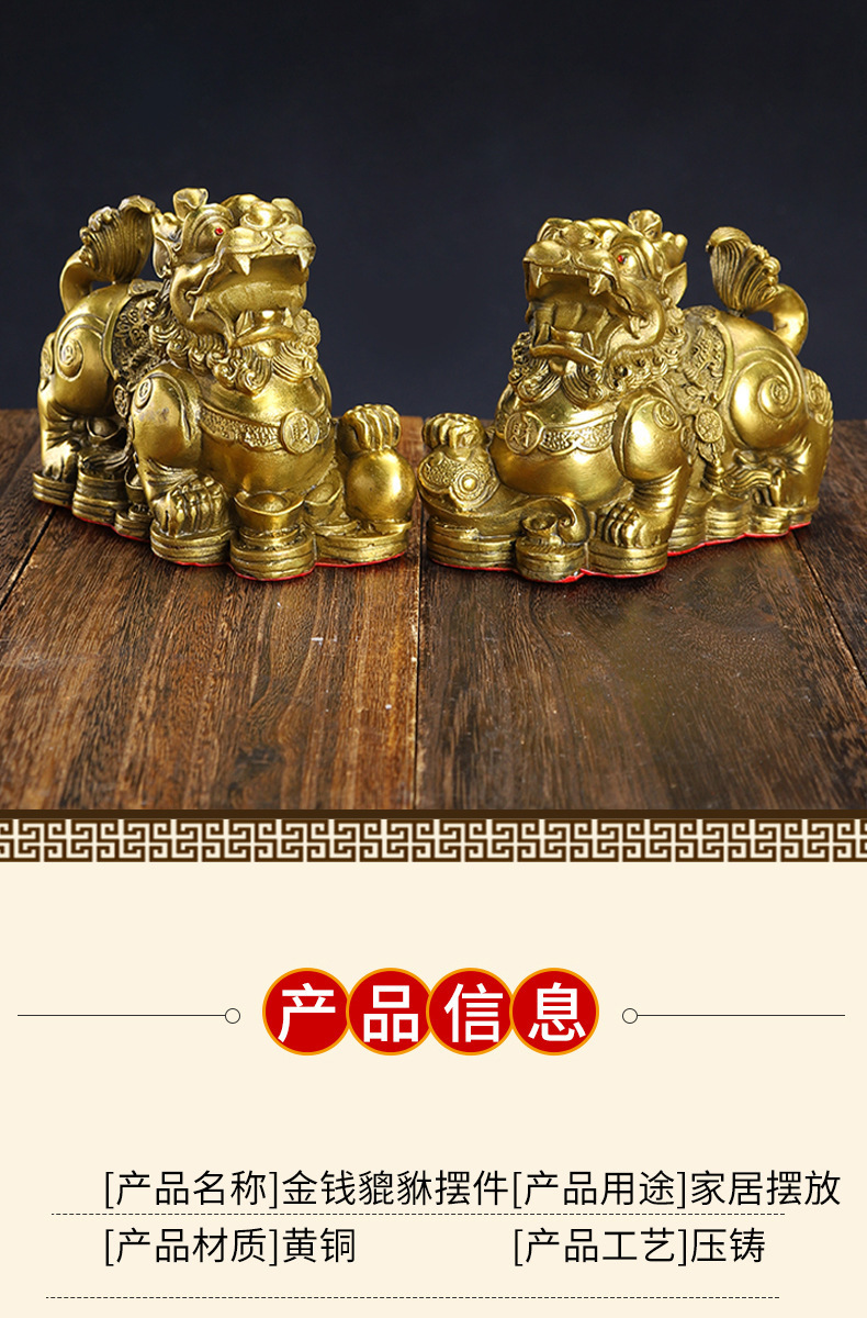 黄铜貔貅摆件金钱皮丘大号一对家居客厅装饰品乔迁新居礼物厂家