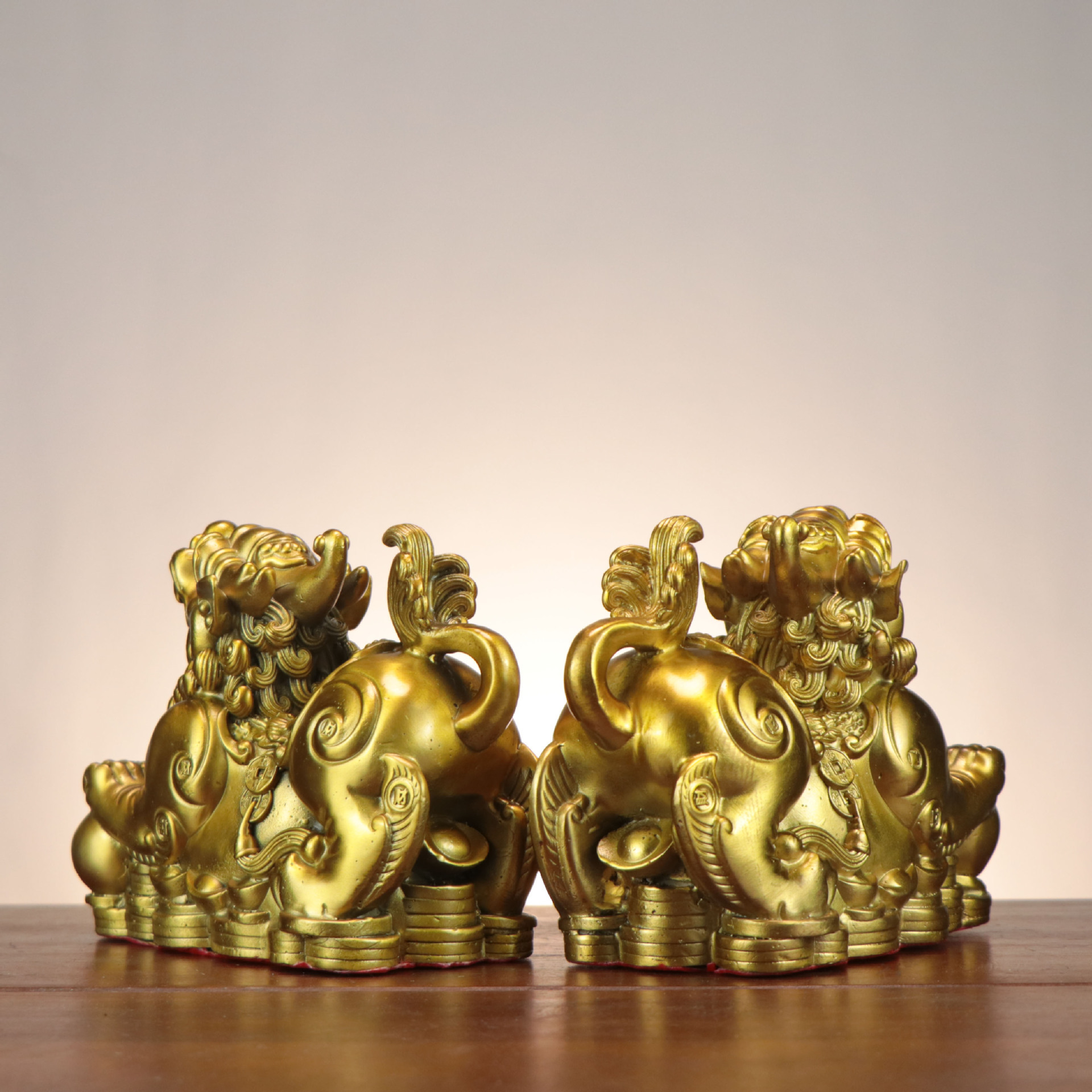 真鍮製貔貅置物、真鍮製四角底貔貅ペア、開店祝い特大貔貅、オフィス用招財貔貅