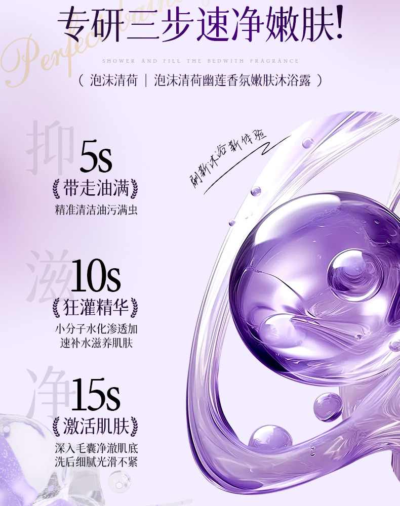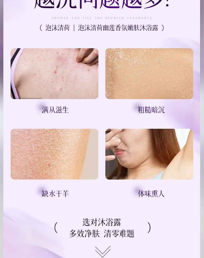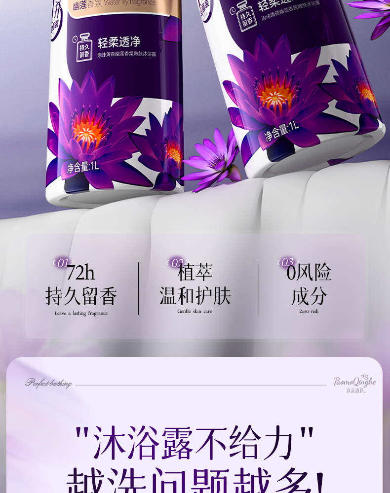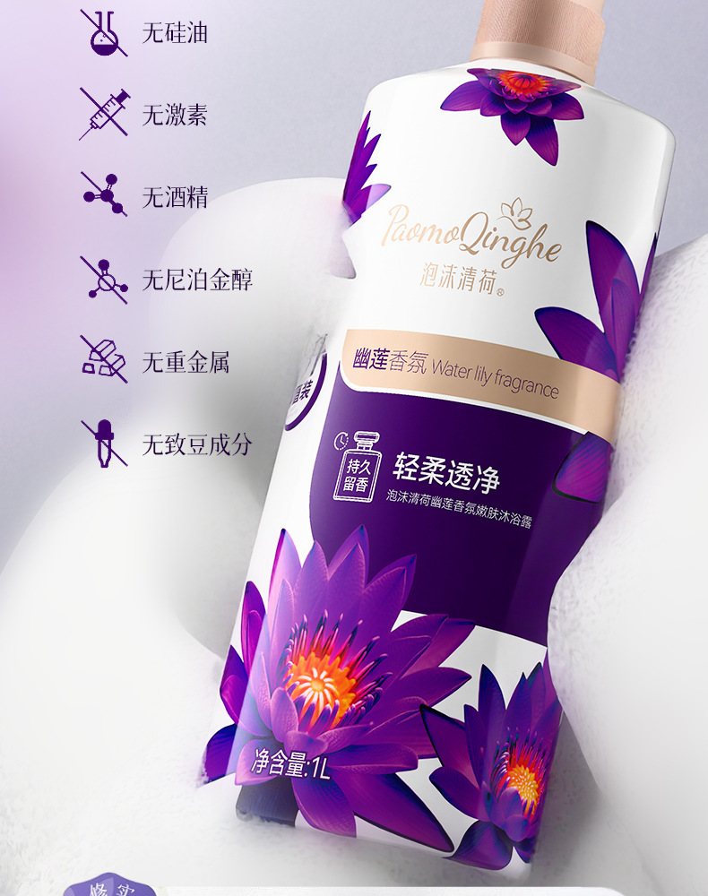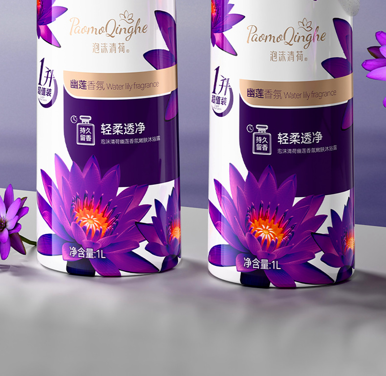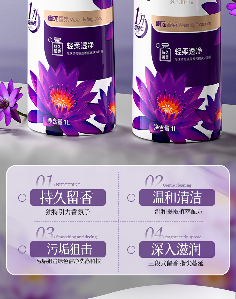 卸売および小売シャワージェル大容量パープルロータスチャームスキンシャワージェルロータス1Lロングラスティングフレグランスシャワージェル