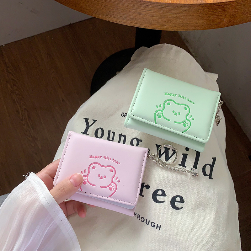 小熊钥匙扣晓三折学生女士零钱夹卡包wallet大容量可爱时尚韩系