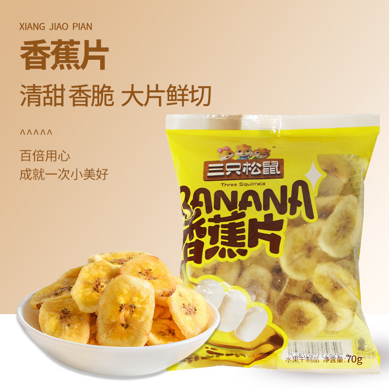批发三只松鼠香蕉片70g新鲜果干蜜饯即食休闲食品便携零食包邮
