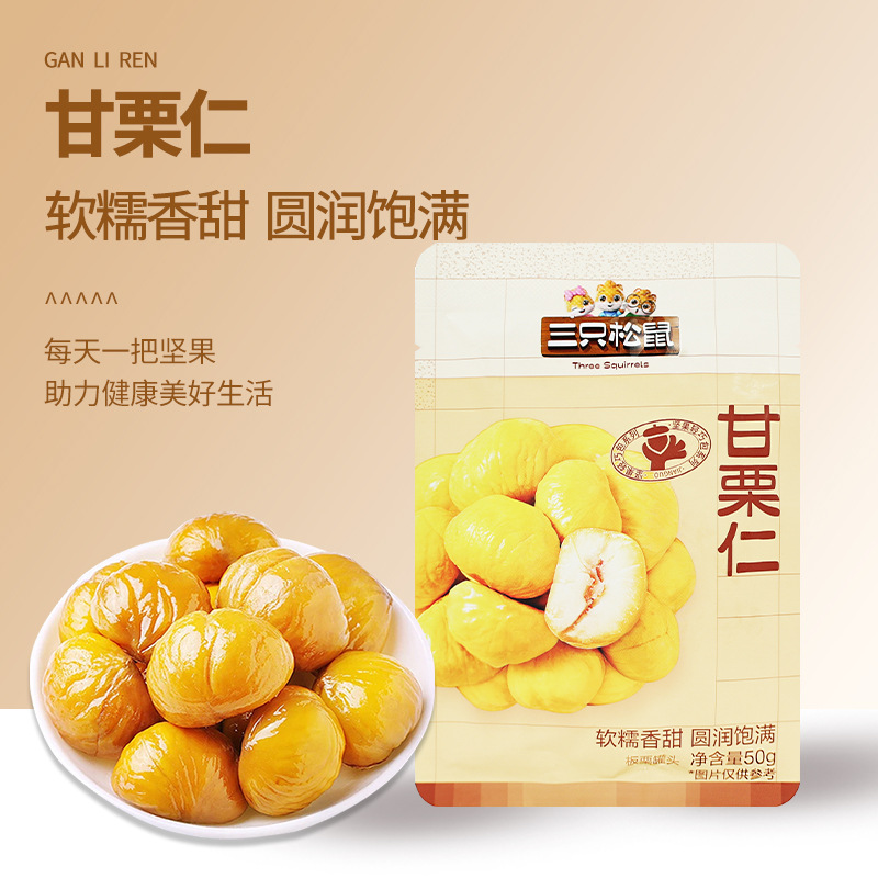 批发三只松鼠甘栗仁50g板栗即食休闲零食办公室软糯润甜小吃包邮