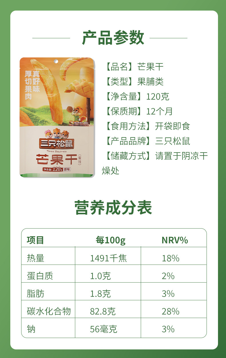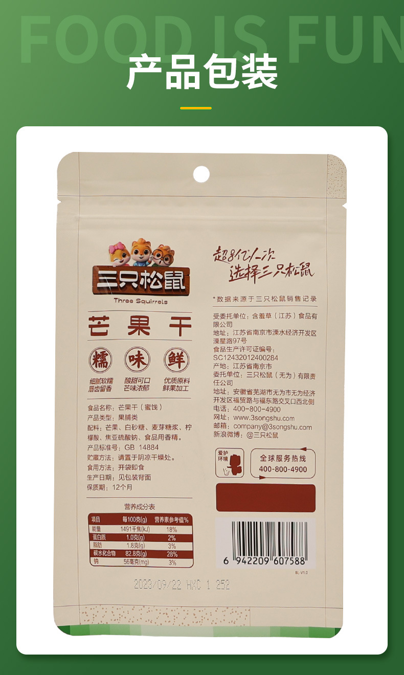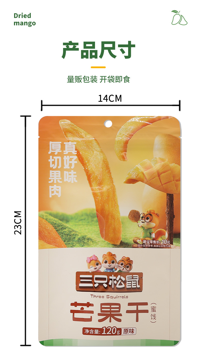 批发三只松鼠芒果干120g新鲜果干果脯酸甜零食水果干解馋零食包邮