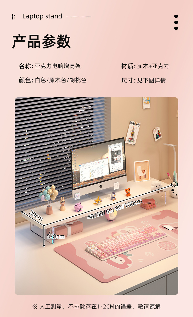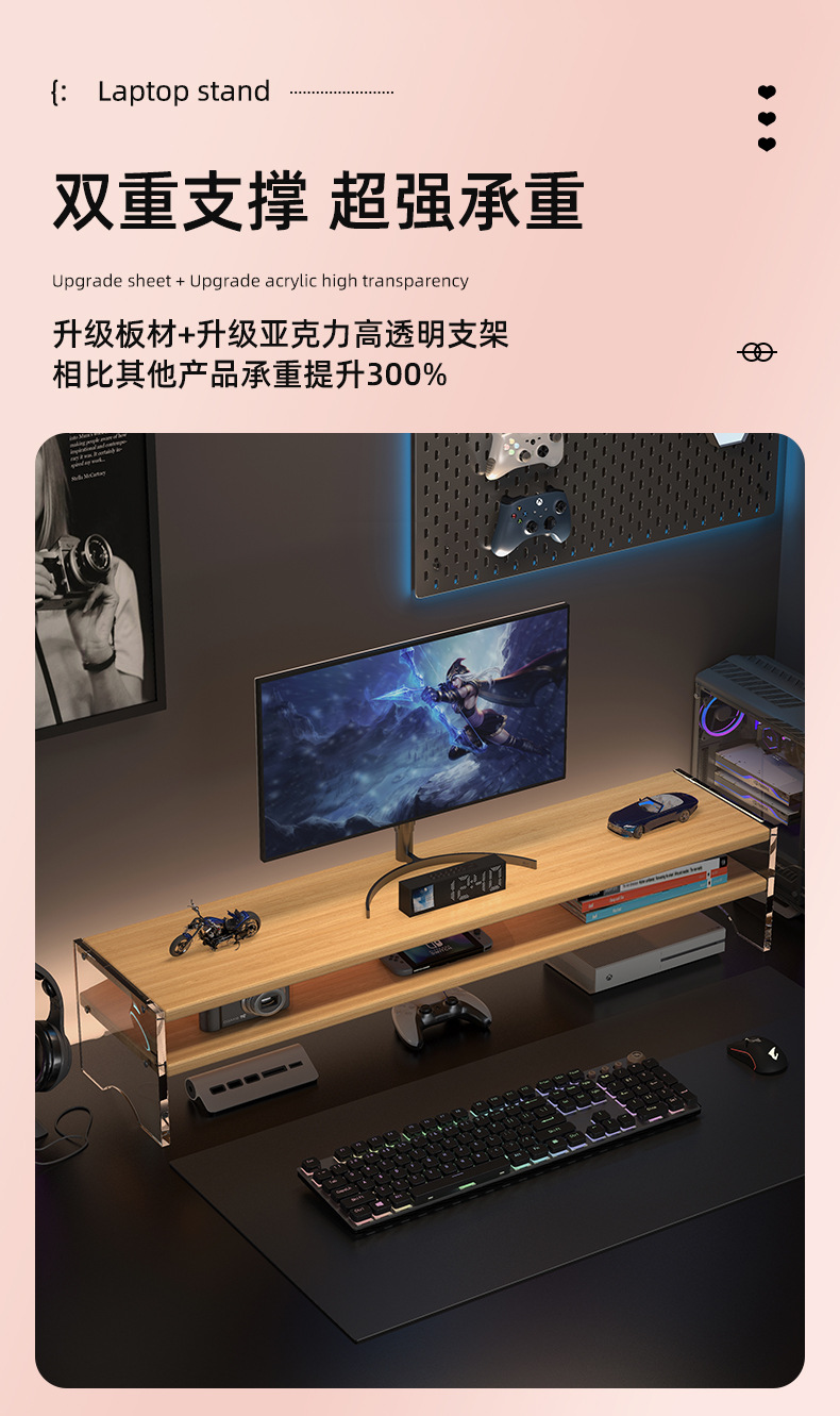 台式电脑增高架办公桌面置物架收纳显示器屏幕抬高底座亚克力支架