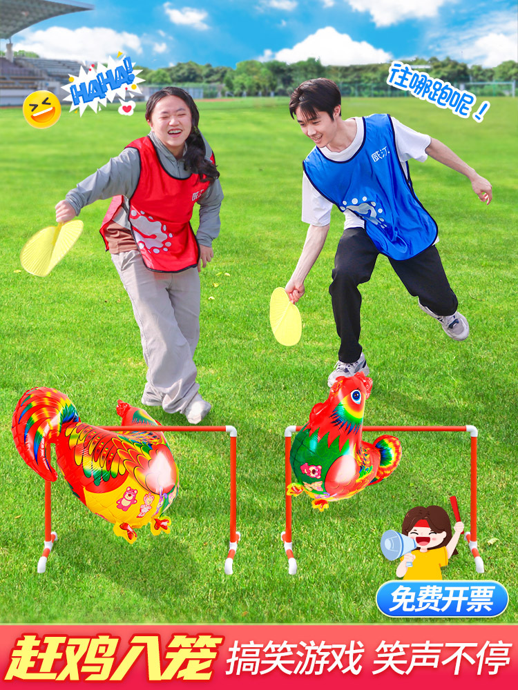 赶鸡入笼游戏道具卡通赶鸭子上架气球团建游戏道具亲子运动会户外