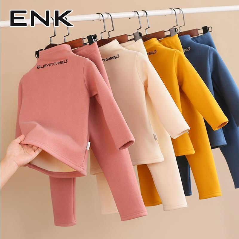 ENK スーパーソフトベビーベルベットプラスベルベット厚みのある子供用暖かいタートルネックボトリングシャツ秋と冬の男性と女性のスーツ