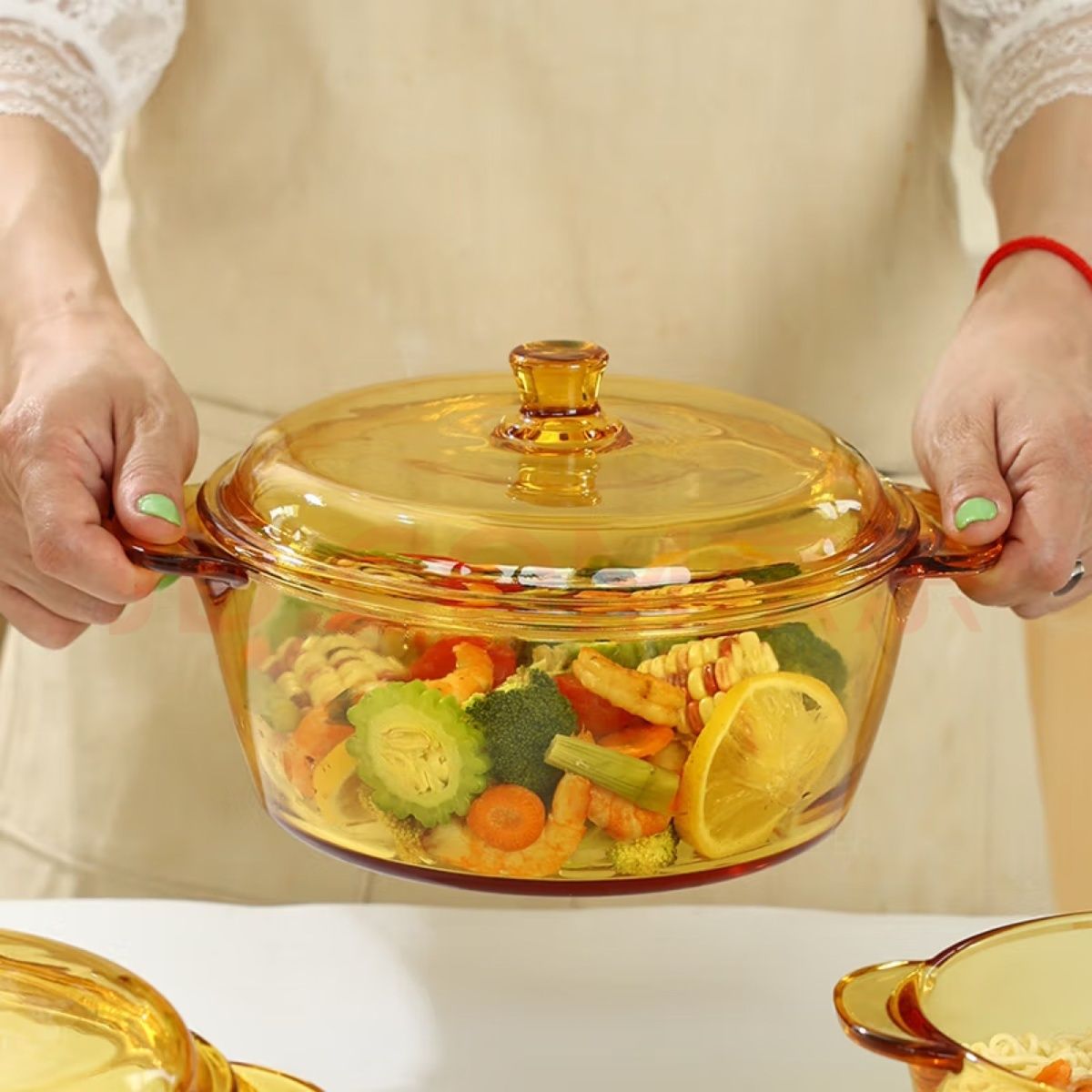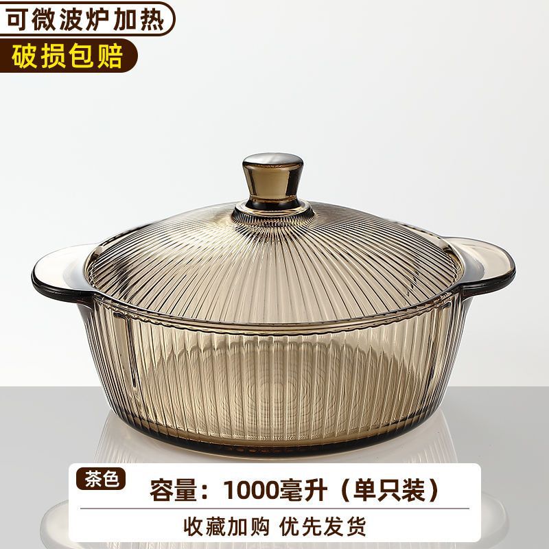 玻璃带盖耐热碗微波炉茶色1L欧式家用带盖玻璃碗泡面碗沙拉面碗