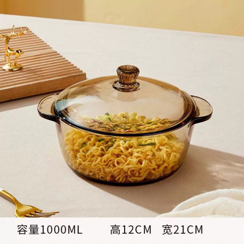 玻璃带盖耐热碗微波炉茶色1L欧式家用带盖玻璃碗泡面碗沙拉面碗厂