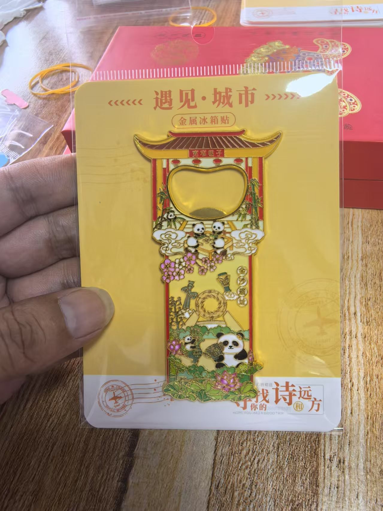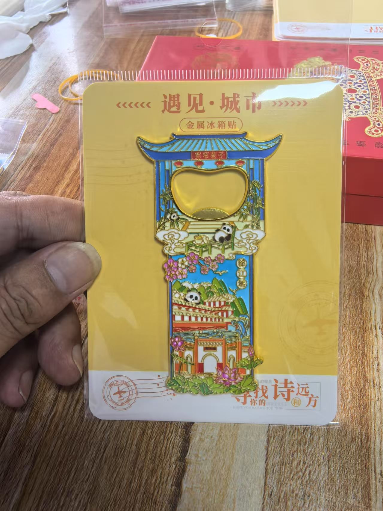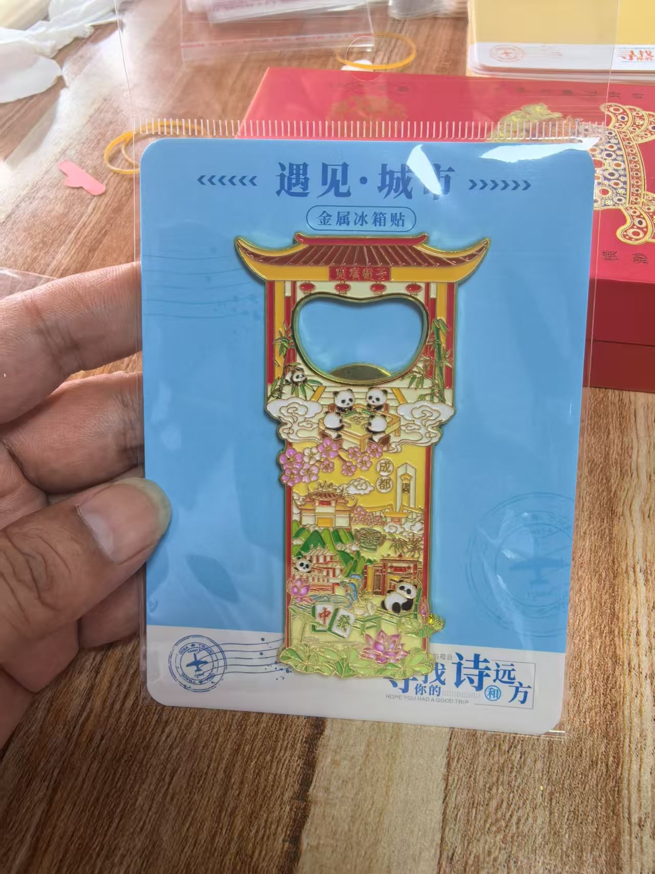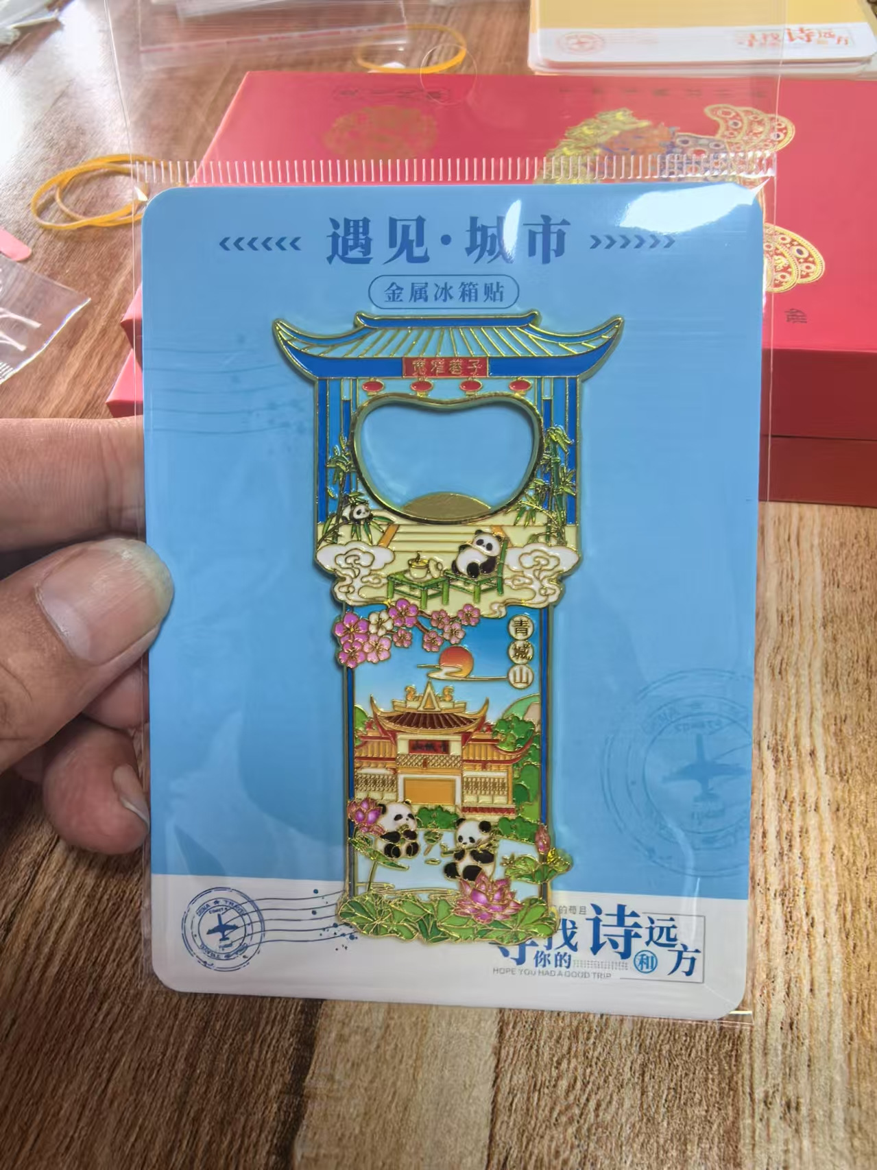 四川成都金属开瓶器冰箱贴文创旅游地标建筑磁吸纪念品熊猫字体