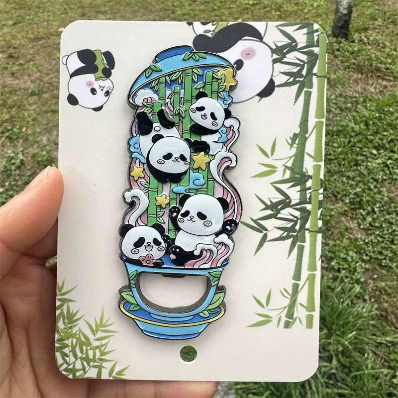 パンダの栓抜きと都市の栓抜きが出会う冷蔵庫用マグネット、良いことが起こる、柿柿如意、縁起の良い意味、創造性