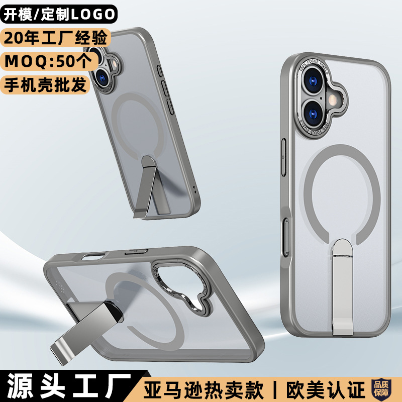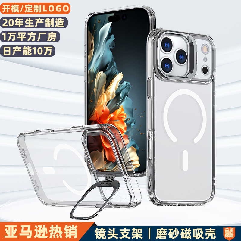 Amazon対応 iPhone 17 Pro Max用ケース MagSafe対応 マグネット式レンズフレームスタンド 超強力クリスタルプロテクター