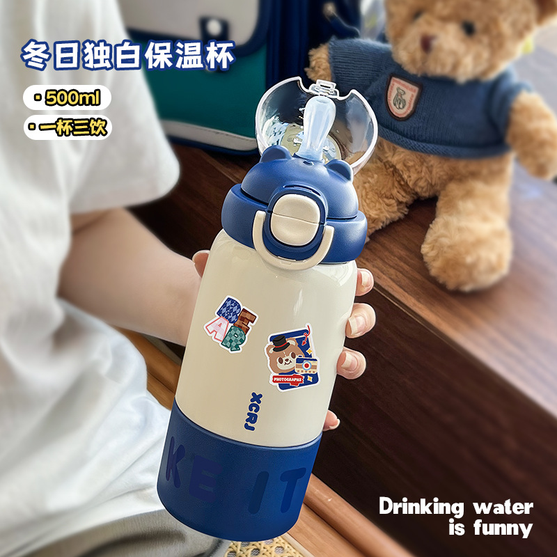 小茶日記秋冬保温カップ316児童ストローコップ学生が学校に通う男女高颜値カップ