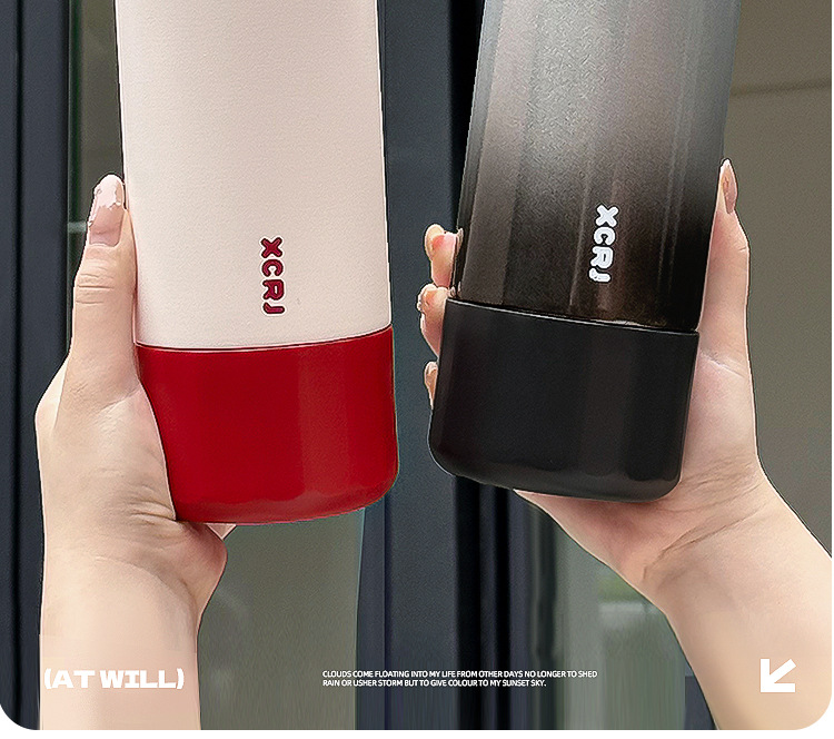新型保温カップ家庭用304ステンレス女子児童学生高颜値グラデーション携帯転倒防止コップ