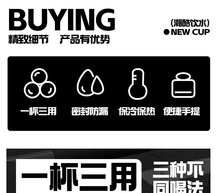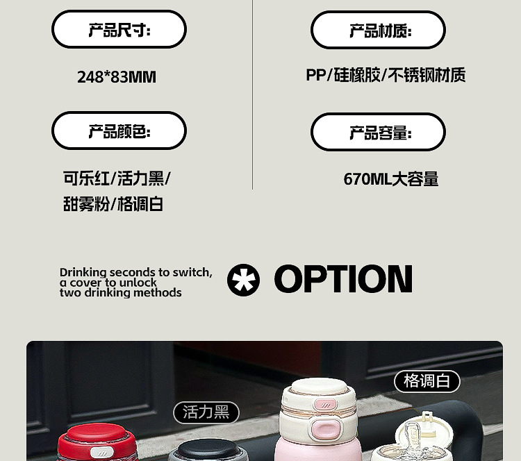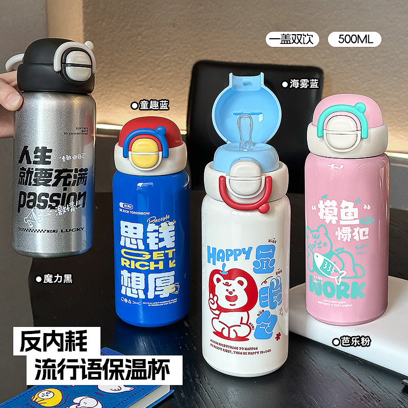 保温杯316不锈钢高颜值一杯多用大容量双饮水杯学生运动吸管杯