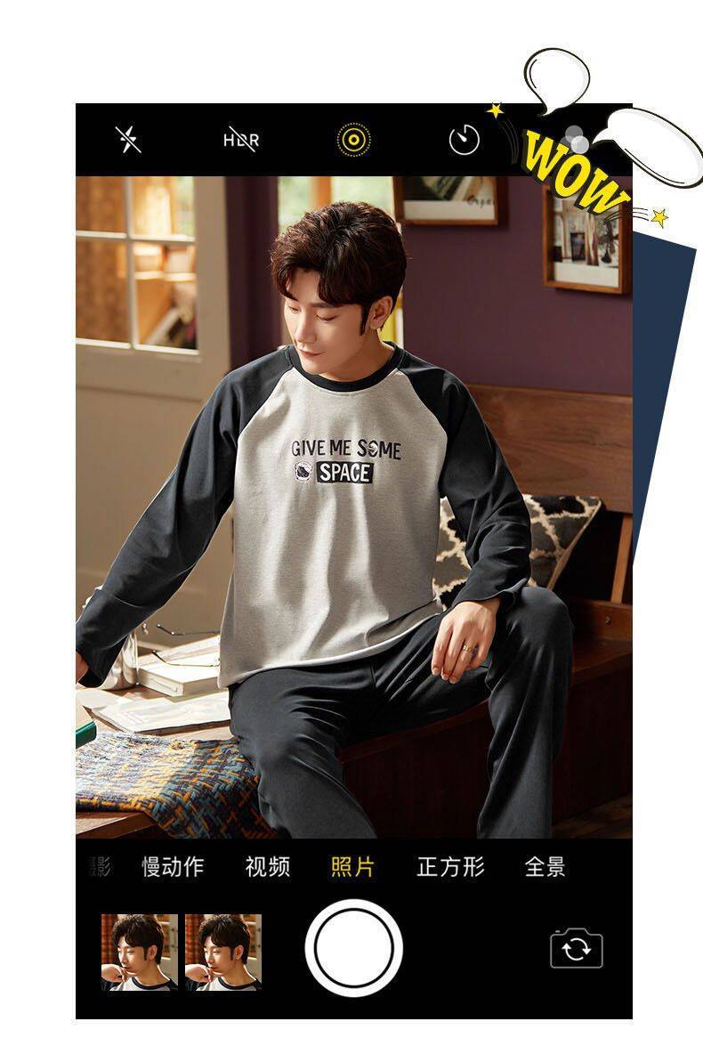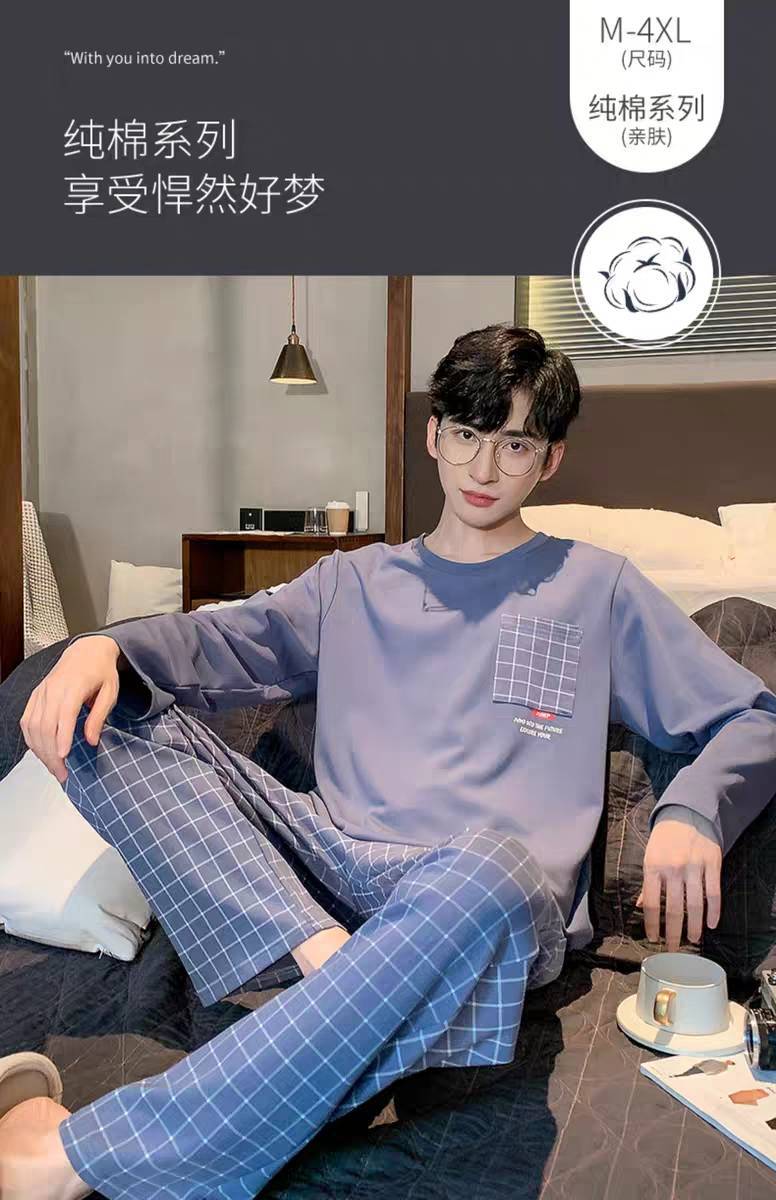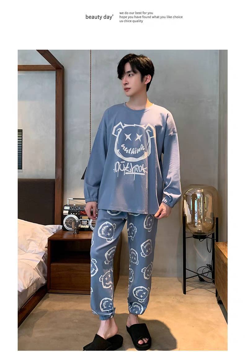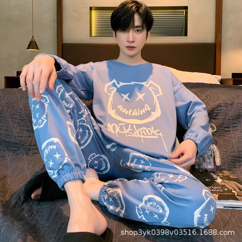 现货睡衣男士春秋款套头长袖秋冬薄款可外穿休闲男款套装家居服