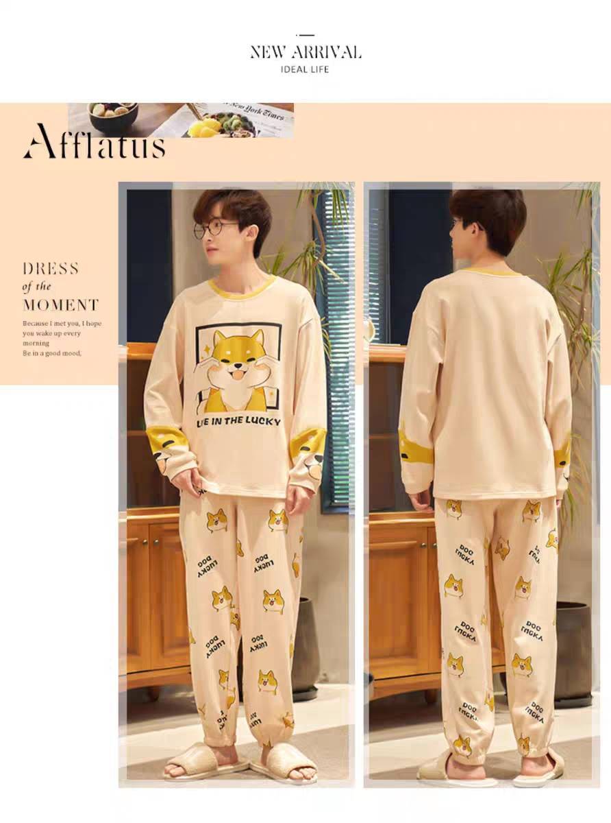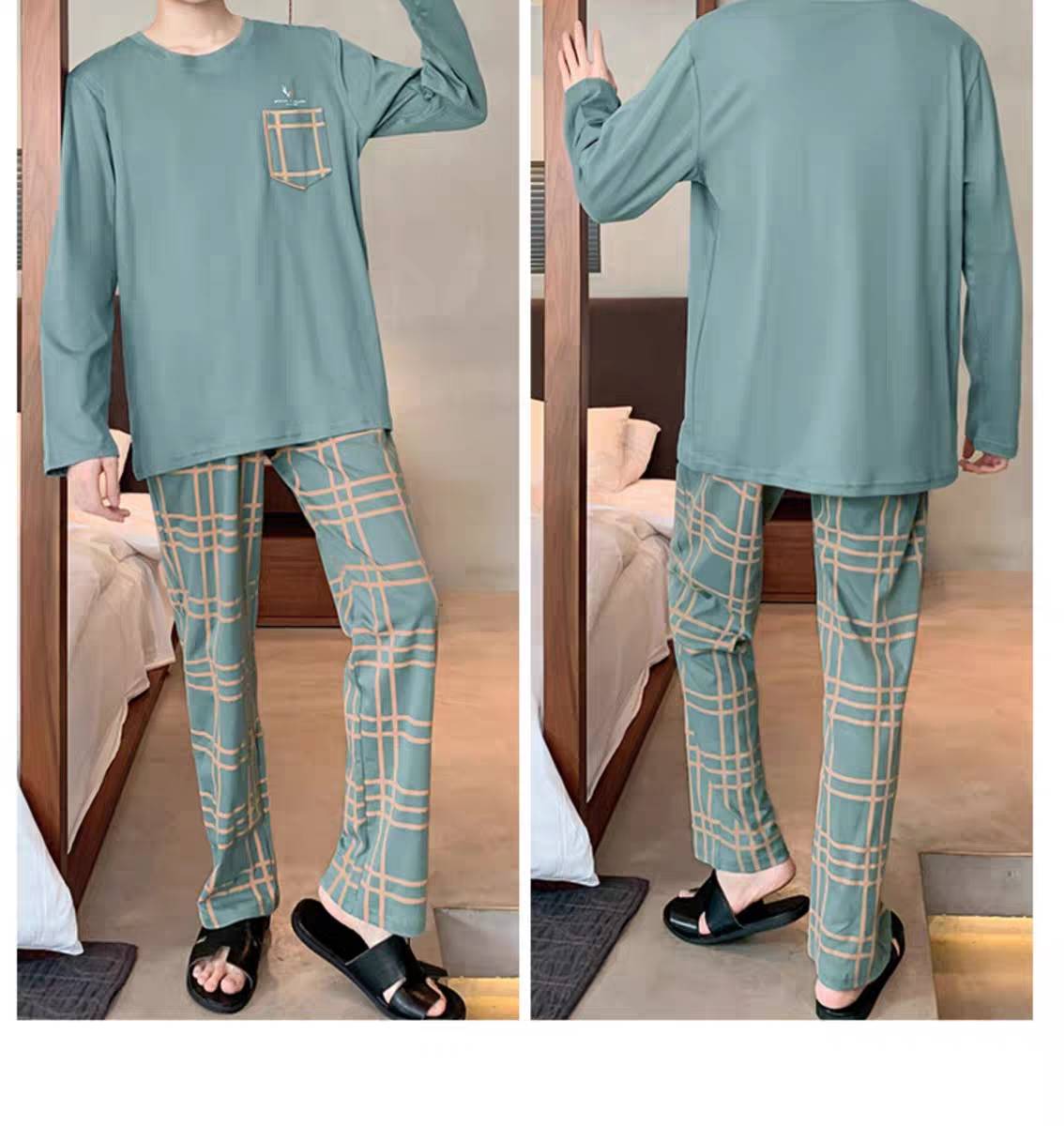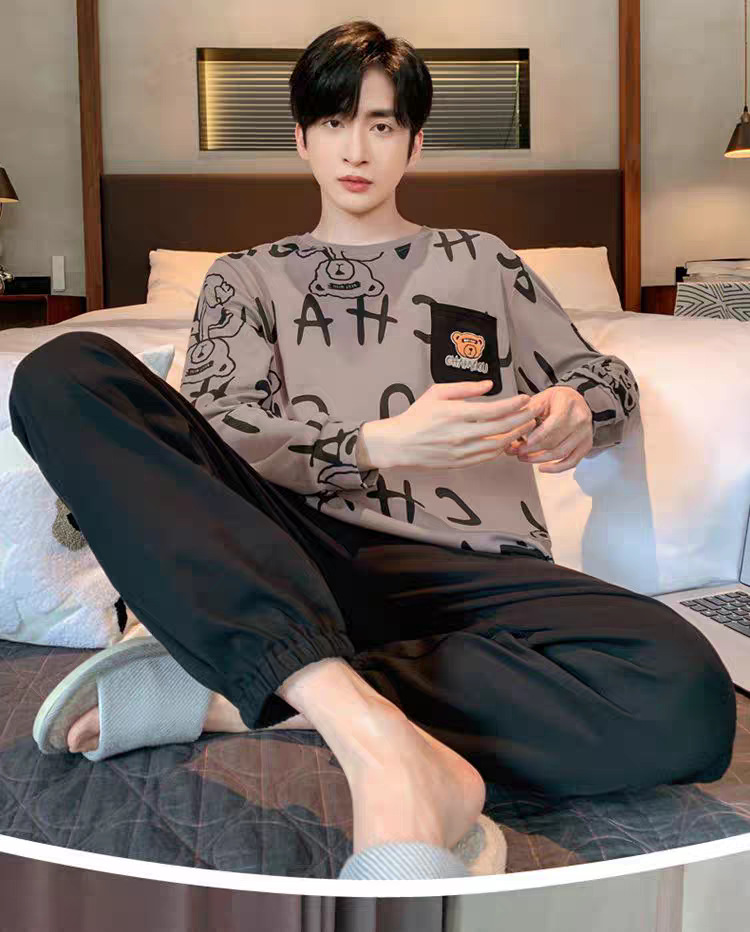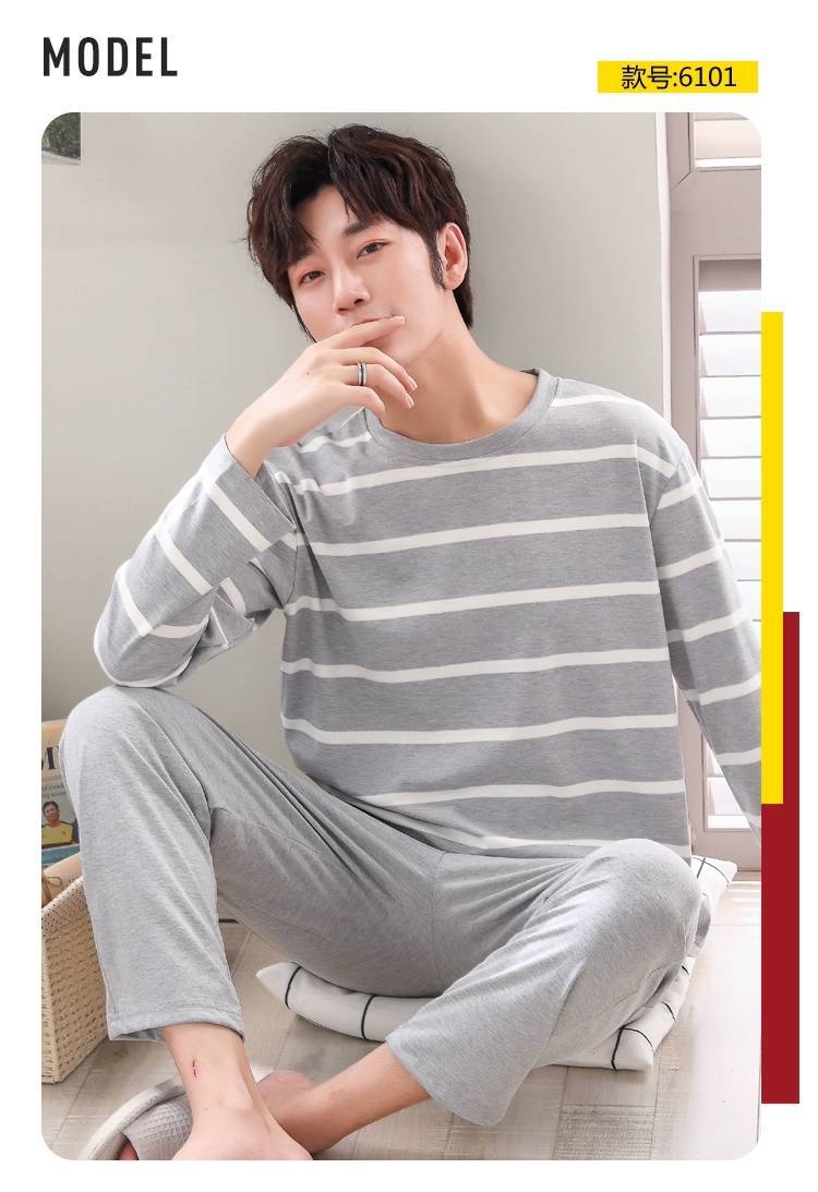 现货睡衣男士春秋款套头长袖秋冬薄款可外穿休闲男款套装家居服
