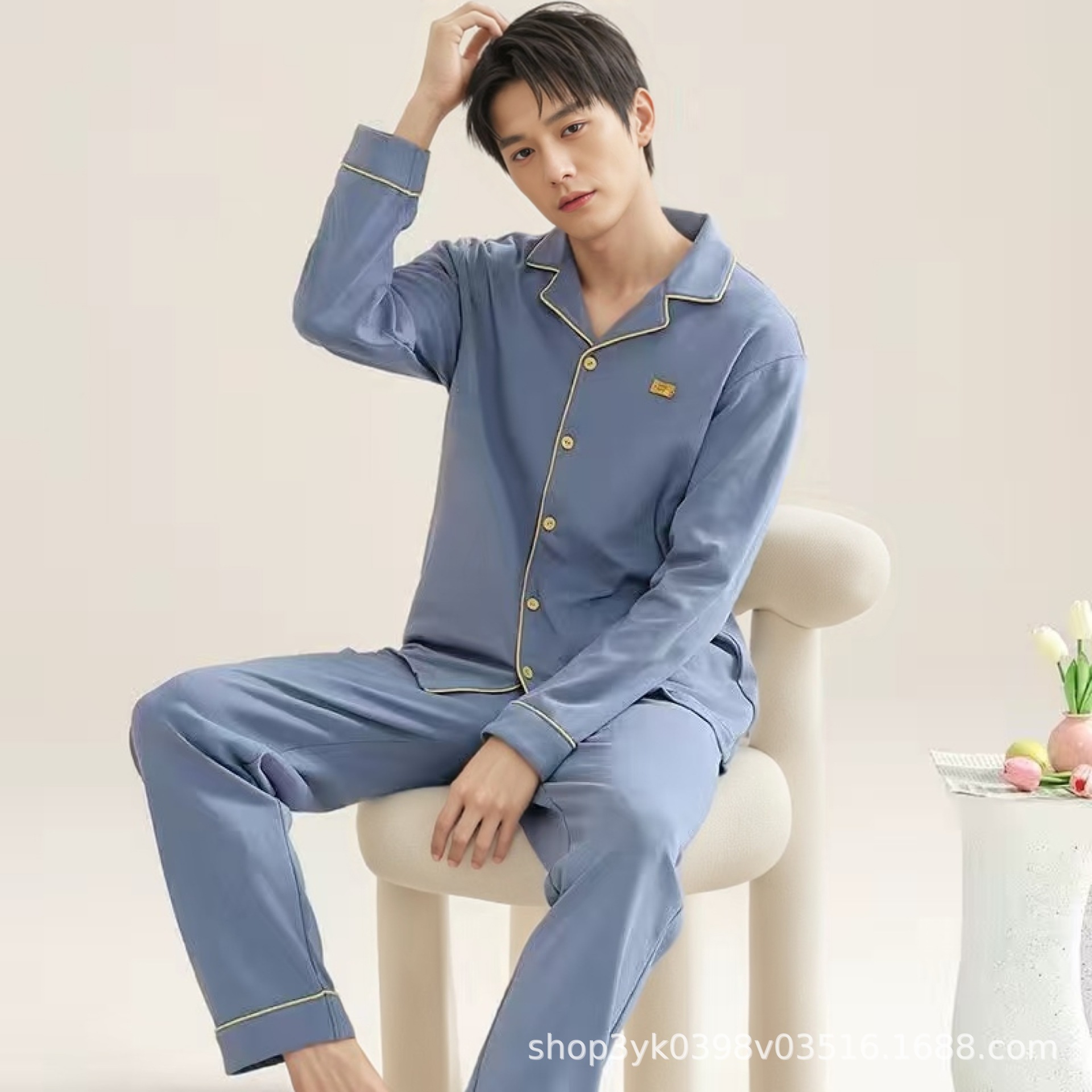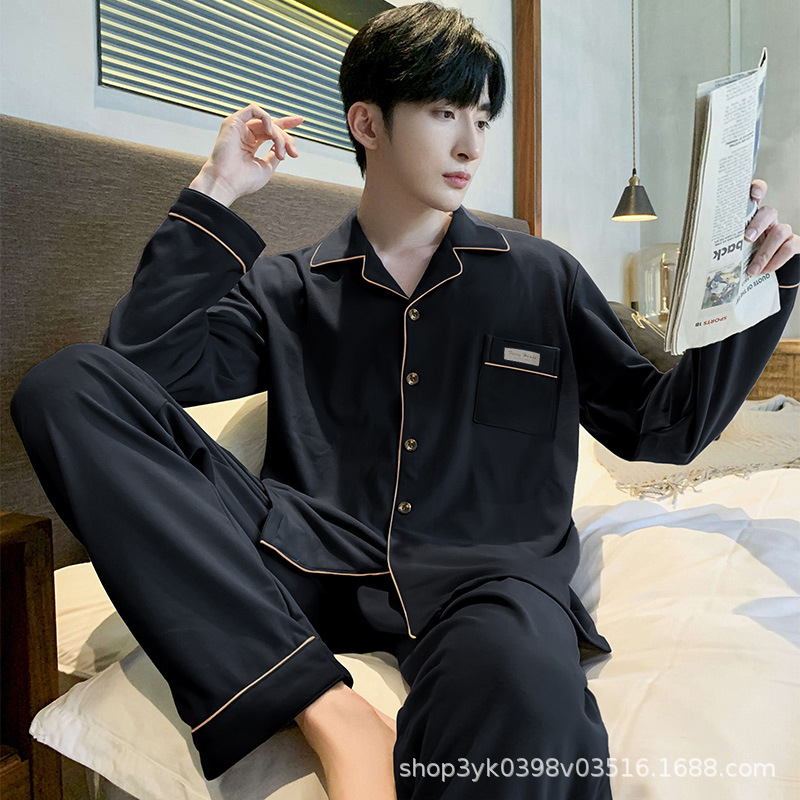 工厂直销睡衣男士春秋款开衫长袖2025新款男生舒适透气家居服套装