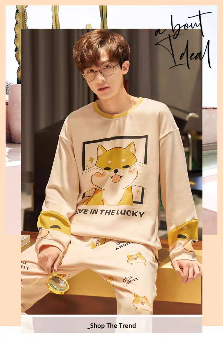 男士睡衣春秋季长袖卡通加肥大码青少年男生秋冬薄休闲家居服套装