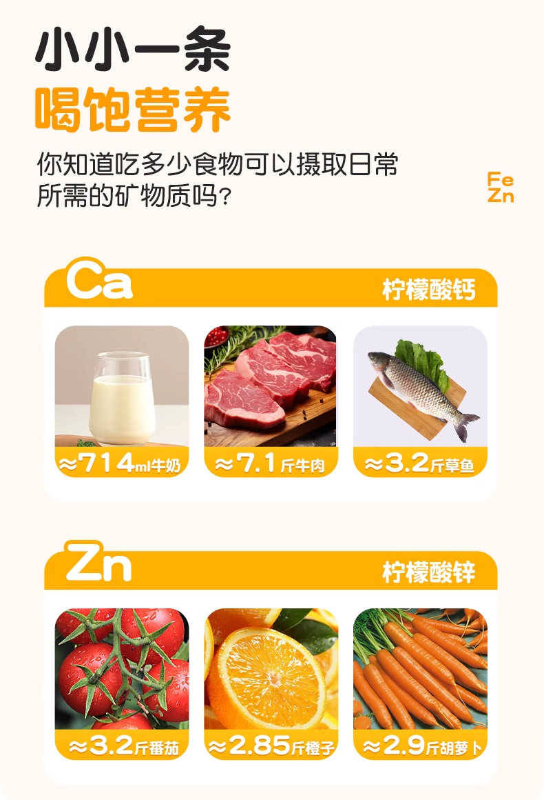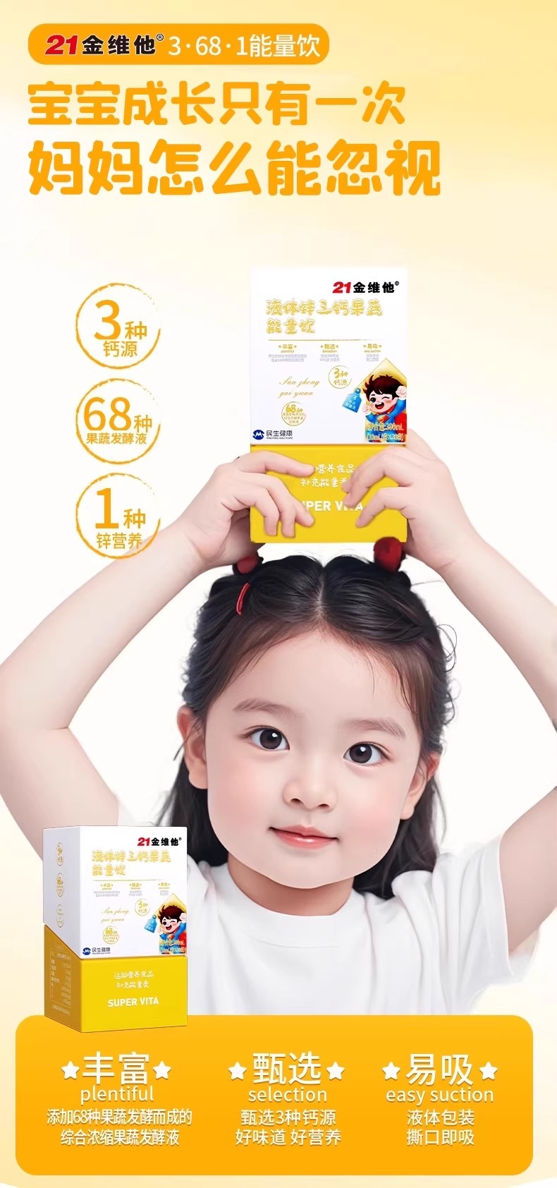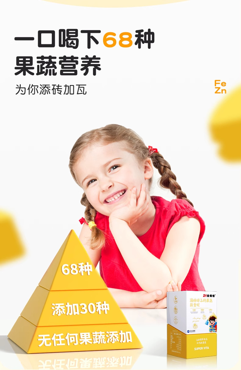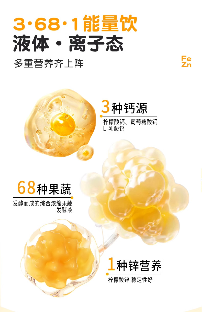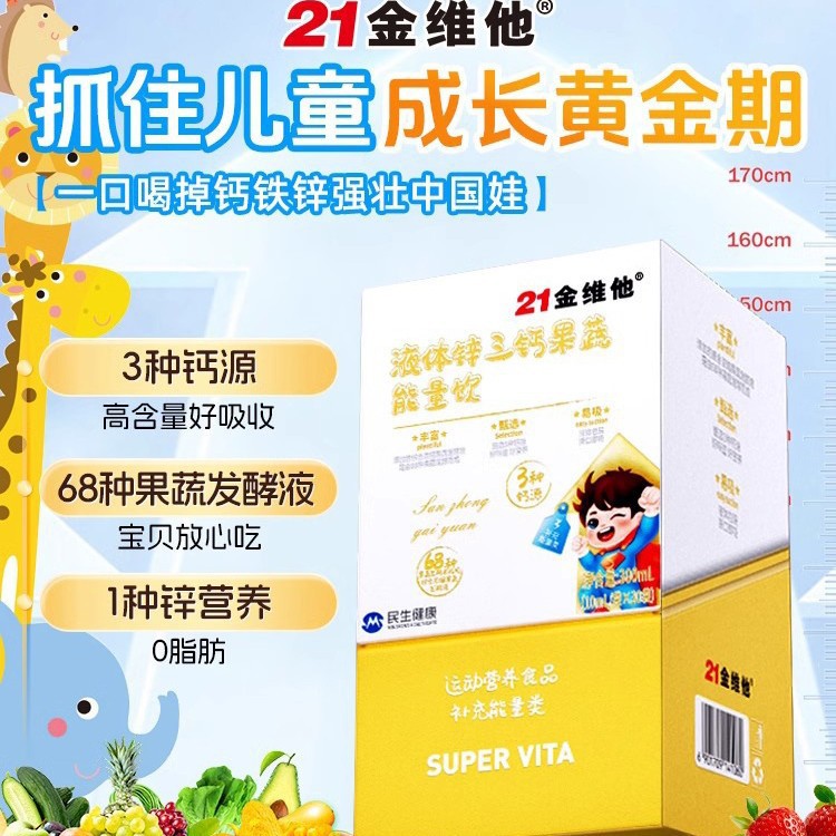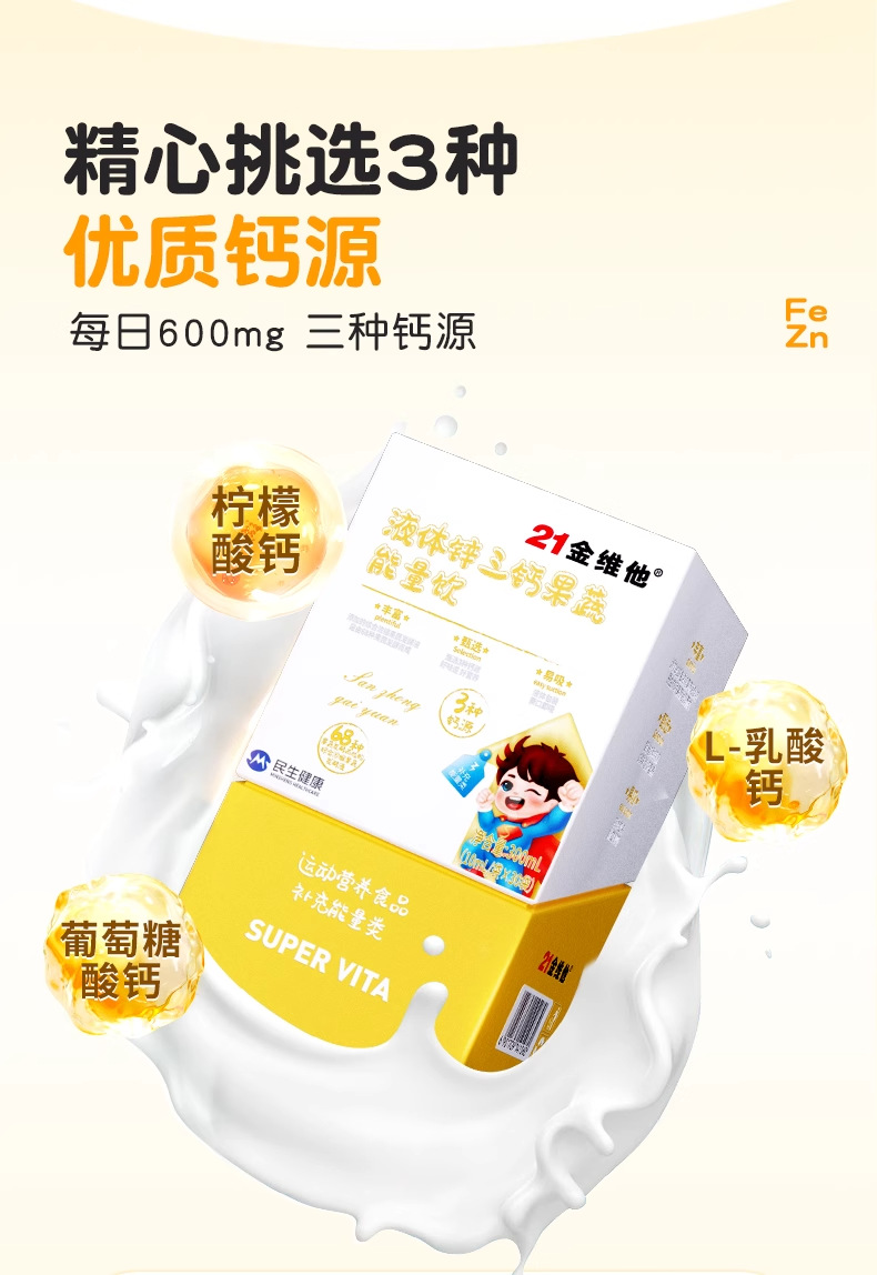 21金维他钙铁锌综合果蔬能量饮儿童成长钙铁锌口服液补钙正品保证
