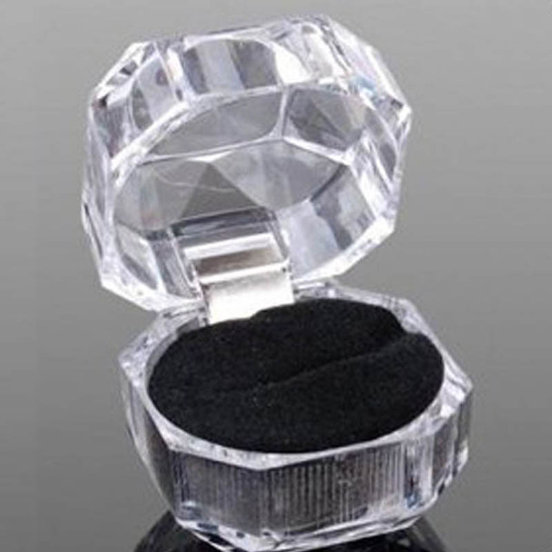 透明水晶箱の小さい八角形の指輪のピアスの包装箱のアクリルの宝石のアクセサリーの収納箱