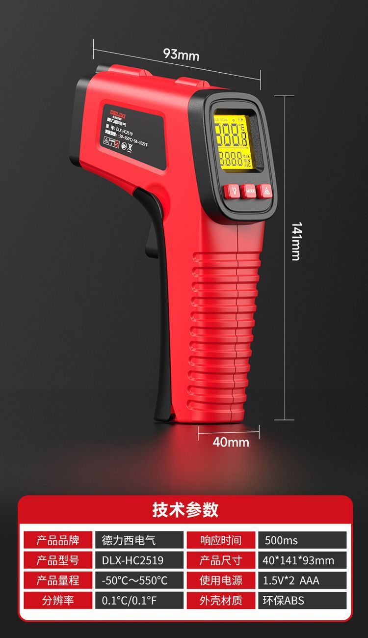 Delixi 赤外線温度計高精度温度キッチン水温油温度計家庭用ベーキング電子産業