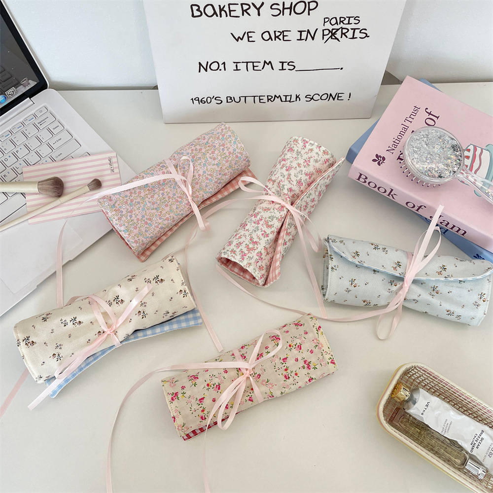57282 布艺碎花款眼影刷子粉刷美妆收纳袋便携眉笔大容量桌面收纳