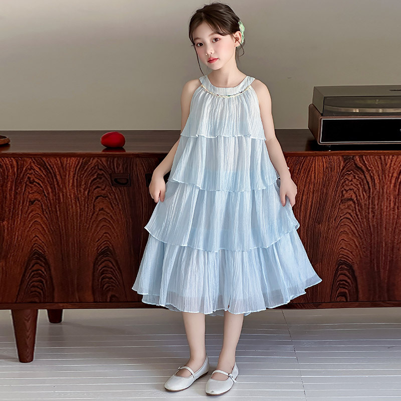 女の子ホルターネックドレス 2025 夏新作韓国風おしゃれなノースリーブサスペンダーケーキスカートビーチスカート
