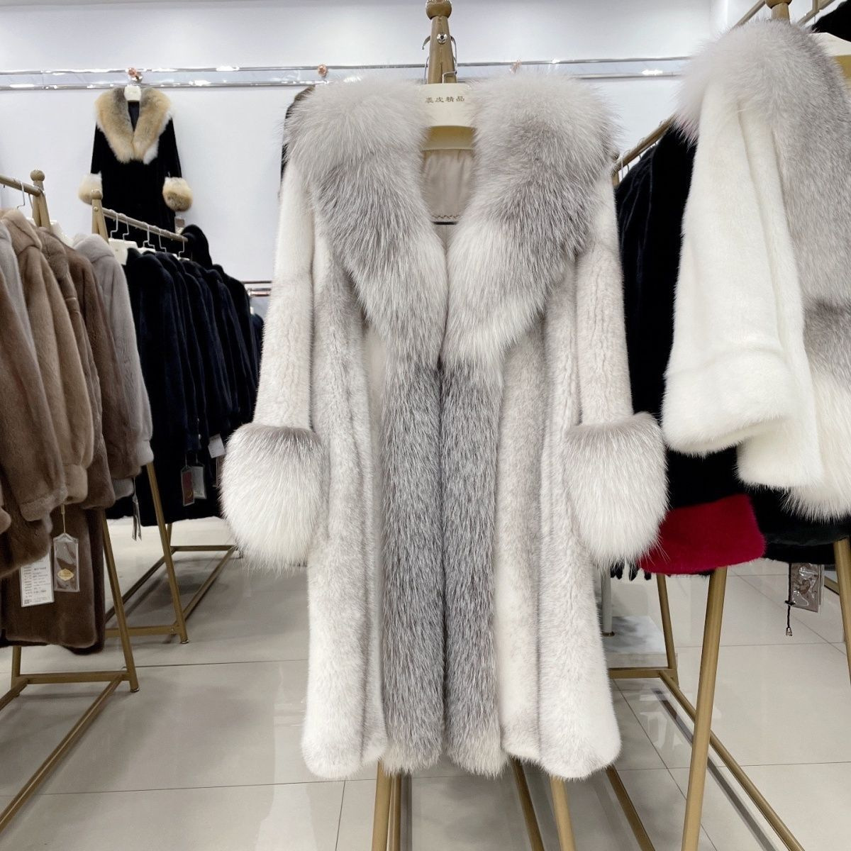 新款进口貂皮大衣整皮狐狸毛领长款修身拼貂真毛水貂毛皮草外套