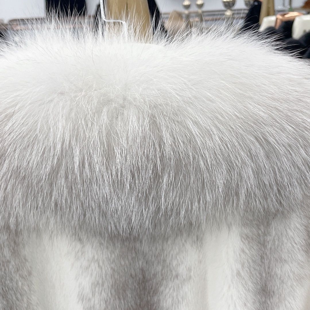レディースウサギ毛皮コート 冬用フルレザージャケット ミディアム丈 シルバーフォックスファー襟付き ママ向けフォックスファー襟付き