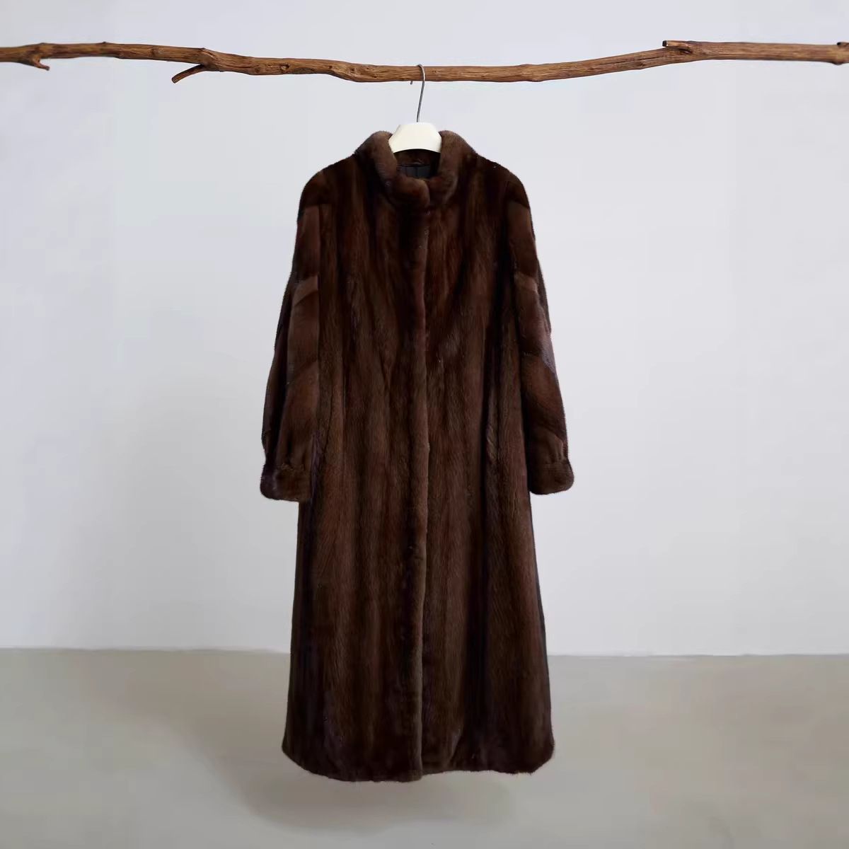 进口天鹅绒小母貂全抽刀超长款貂皮大衣女水貂皮草整貂年轻款外套