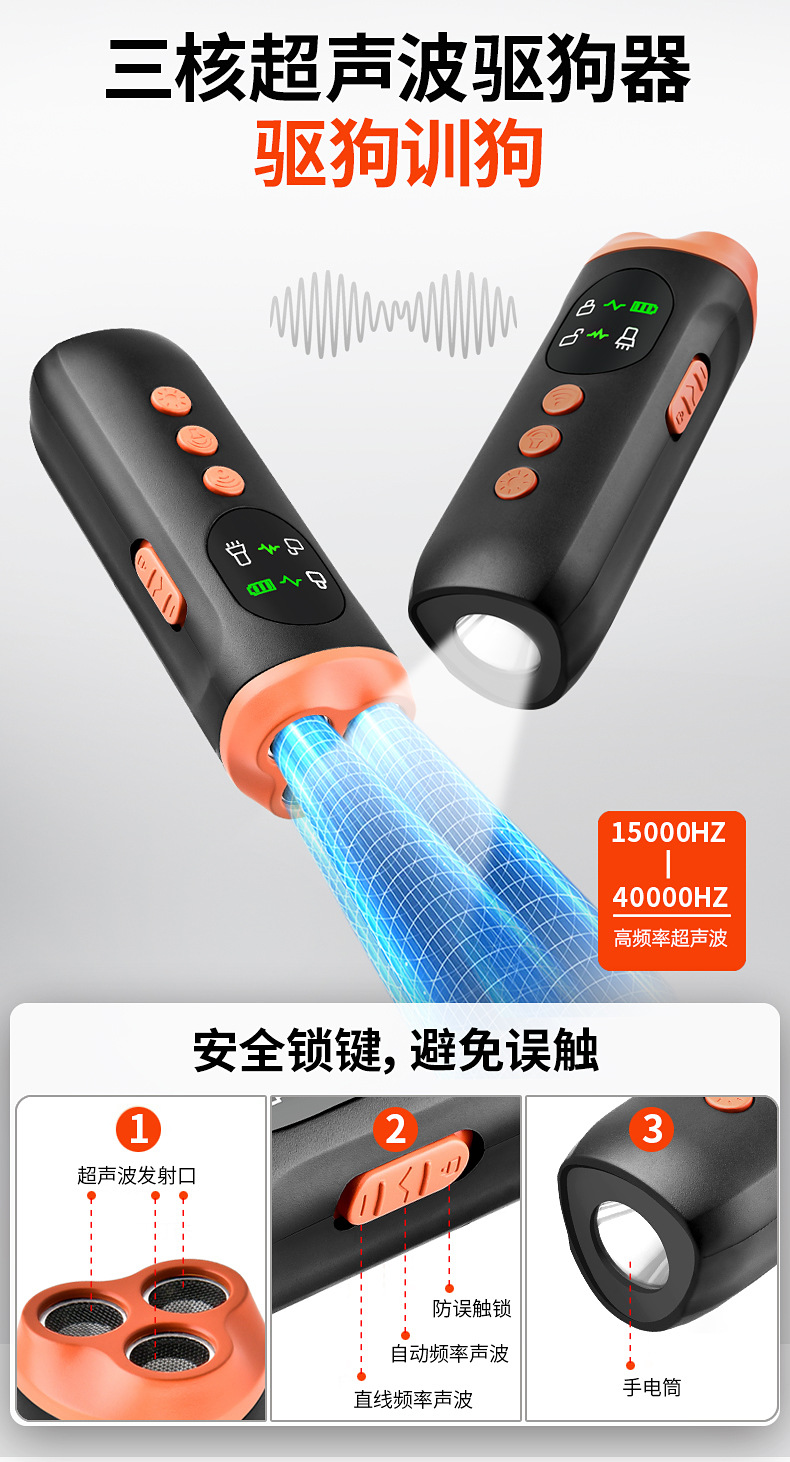 超音波犬駆除器デュアルコア新型アマゾンクロスボーダー専用ダブルヘッド音波吠え止め器懐中電灯犬駆除神器
