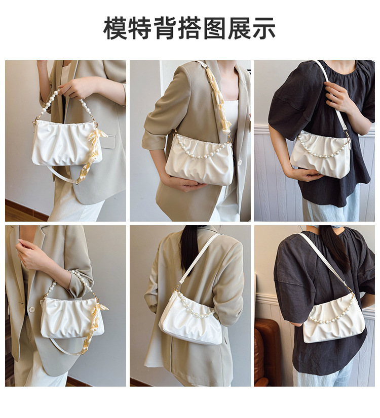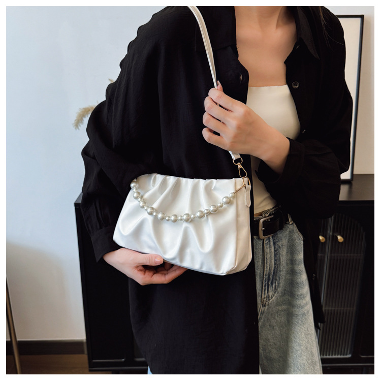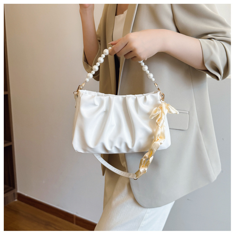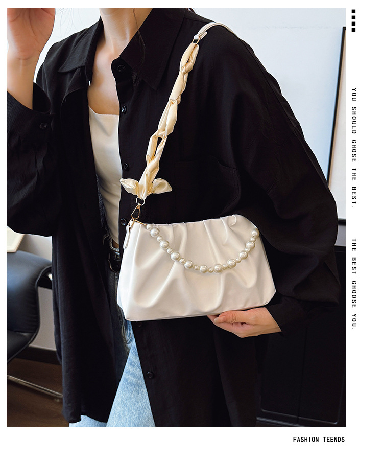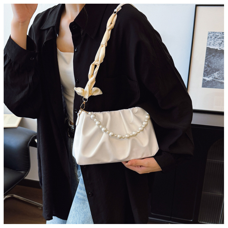 在庫ありレディース脇の下ショルダーバッグ 2025 夏韓国ファッション通勤パールチェーンバッグ小さな香りのクロスボディバッグ