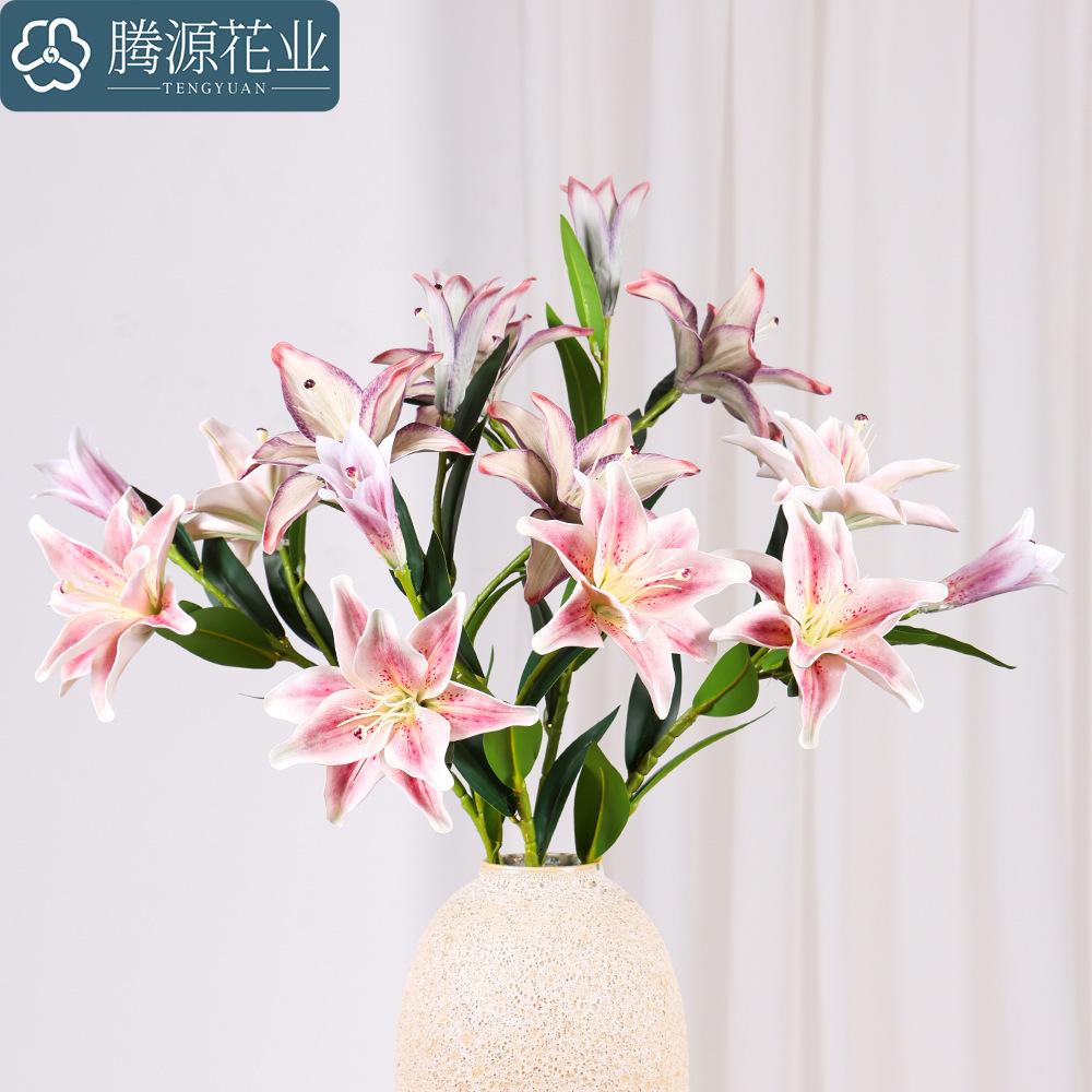 高級ユリ造花インターネット有名人の長い枝 3 頭香水ユリの花結婚式の装飾造花写真小道具と装飾品