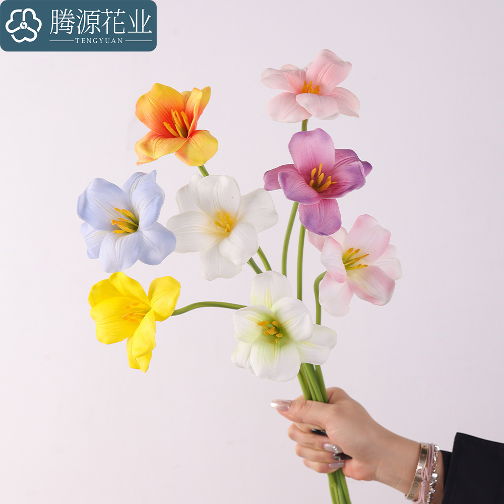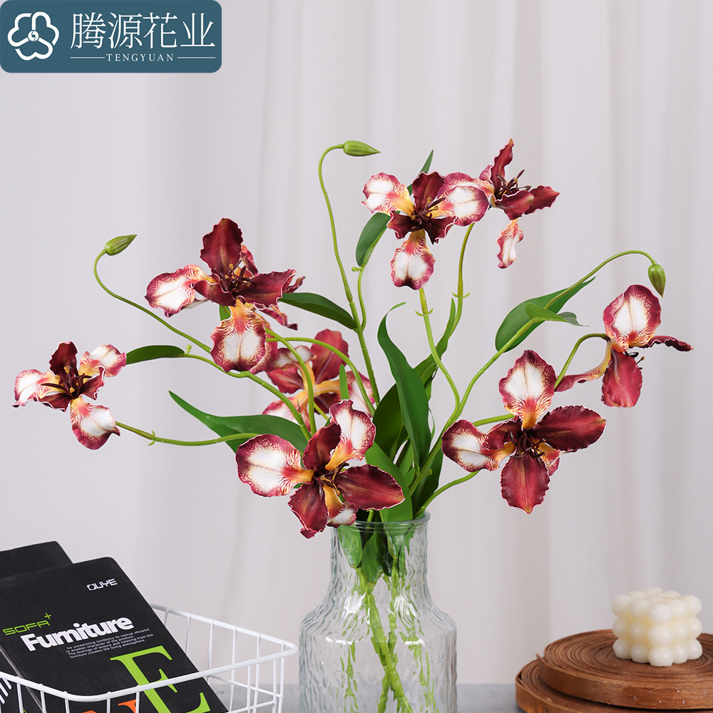 仿真花假花单枝3头小鸢尾兰高品质商场橱窗配花造景布置火焰百合