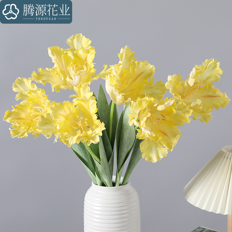 仿真花 郁金香 大花翻瓣无叶PU手感家居软装工程婚庆布景摆件假花
