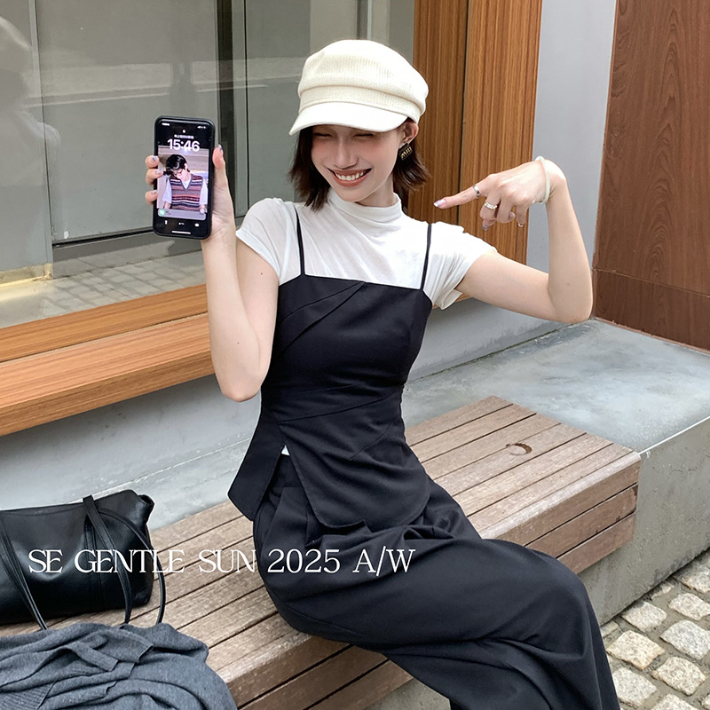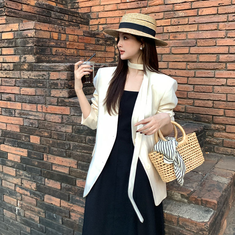 Xiuxixi 2025 秋の新白ラベル気質ホルターネック長袖エレガントなドレスハイエンドショートスカート女性のための 88435