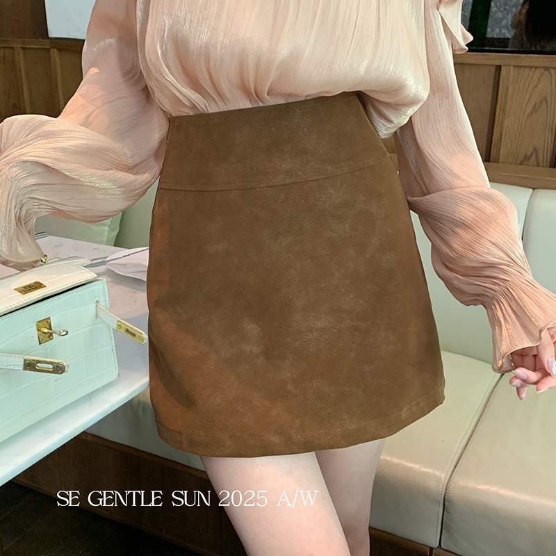 【特价不退换】秀熙熙秋季通勤显瘦高腰气质PU短皮裙子女85245