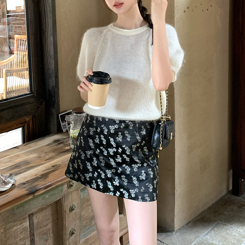 【特价不退换】秀熙熙秋季气质提花高腰半身裙A字包臀短裙子85031