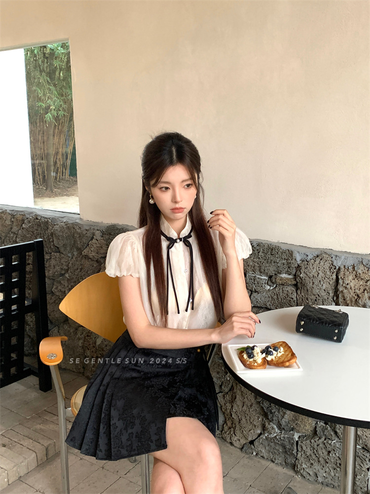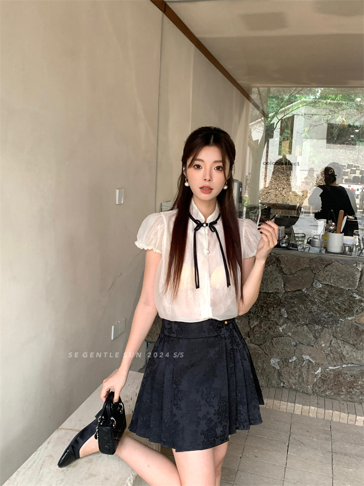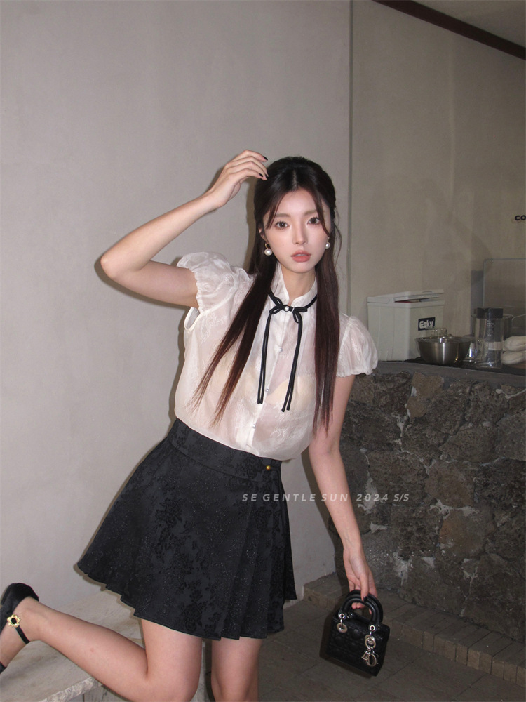 【クリアランス返品交換不可】Xiuxixi 2025夏新作半袖オフショルダーシンプルシャツトップス 89272-1